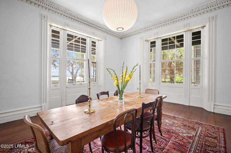 Iconic John Joyner Smith House, Circa 1811 - 400 Wilmington Street A rare opportunity to own one of the most distinguished historic homes in the area, the John Joyner Smith House stands proudly on a full city block with commanding presence and timeless elegance. Originally constructed circa 1811, this architectural gem underwent a significant transformation in the 1850s, when the main entrance was relocated to Wilmington Street, giving the home its current distinguished front facade and grand street presence. This 4,450 sqft main residence features 4 spacious bedrooms and 3.5 baths, including double parlors adorned with elaborate crown molding, multiple fireplaces, and expansive wood floors throughout. The formal living and dining rooms offer elegant spaces for entertaining, while jib windows on both deep porches ensure effortless indoor-outdoor flow and optimal southern breezes. Two-story piazzas, supported by eight full-height round columns, provide gracious outdoor living with sweeping views and unmatched charm. With large windows facing Bay Street and an elaborately detailed exterior, the home is bathed in natural light and offers breathtaking views in every direction. Despite its grandeur, it retains a sense of warmth and livability, ideal for both grand entertaining and comfortable day-to-day living. The guest house, offering an additional 1,394 sqft, includes 2 bedrooms and 2 full baths, exposed wooden beams, and refined architectural detailsperfect for guests, extended family, or private work space. Located just steps from downtown, the marina, premier dining, and shopping, this iconic property seamlessly blends historic character with modern convenience. An unparalleled opportunity to own a piece of history in an exceptional location. This material is based upon information, which we consider reliable, but because it has been supplied by third parties, we cannot represent that it is accurate or complete, and it should not be relied upon as such.