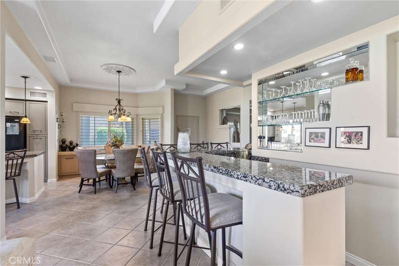This beautifully updated three-bedroom, three-bath Sycamore floorplan offers over 1,900 sq. ft. of luxury living on Wisteria.Located on the 14th hole of the "Challenge " course. Step inside and let your Sonos set the mood as you're welcomed into a tasteful, "Safari Vibe" -inspired smart home. Designed for both relaxation and entertaining, the open floor plan features a spacious family room with a cozy fireplace, a huge kitchen island, and a wraparound wet bar with seating for six and a wine refrigerator.