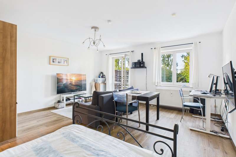 This attractive apartment with a living space of approx. 45 m² is centrally located in Gersthofen. The property is suitable for both singles and commuters who are looking for a furnished apartment with a well thought-out floor plan in the city center and who value a beautiful garden and terrace. The open-plan living and sleeping area is functionally furnished and conveys a harmonious sense of space. The practical fitted kitchen offers you culinary independence. The bathroom has a shower tray and is decorated in neutral tones. A washing machine is also available. Another highlight is the access to your own terrace, which not only offers you additional space, but also leads directly into the beautifully landscaped garden. Here you can take a break from everyday life, relax or spend sunny hours in the greenery without having to forego the advantages of a central location. A storage room offers additional storage space for personal belongings. A cellar compartment rounds off the offer. Have we piqued your interest? Please do not hesitate to contact us for further information or to arrange a viewing. We look forward to your inquiry!