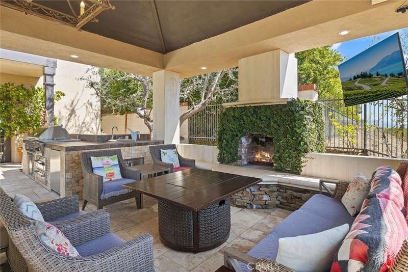 Welcome to 11755 Collar Ave. This luxurious oasis is nestled in one of the most coveted locations within the prestigious 24-hour guard-gated community of Tustin Ranch Estates. This stunning 5,900+ sq. ft. residence offers breathtaking views, mesmerizing sunsets, and picturesque vistas of Catalina Island, all from a peaceful, single-loaded cul-de-sac street. Situated on a sprawling 16,000 sq. ft. lot, the home boasts a seamless blend of elegance and privacy. With its spacious layout, upscale finishes, dual staircase, and panoramic surroundings, this estate invites you to experience an unparalleled lifestyle of comfort and sophistication. This former builder's model home was thoughtfully designed with premium upgrades, offering a luxurious yet comfortable living space. Every detail has been meticulously crafted to elevate the home's elegance, from high-end finishes to custom features, providing an exceptional blend of style and functionality. Whether enjoying the expansive indoor areas or the breathtaking outdoor views, this home delivers an unparalleled living experience. The kitchen is a chef's dream, featuring custom-made cabinetry and ample storage. Equipped with a double oven, built-in refrigerator, and a 6-burner cooktop, this space is designed for both cooking and entertaining with ease. On the first floor, you'll find a primary en-suite, a formal study with a fireplace, a bright family room, a breakfast nook, and a formal living room with an astonishing wood-carved fireplace and cathedral ceilings. A formal dining room and a bar enhance the home's entertainment capabilities. The master suite on the second floor boasts its own viewing balcony, offering stunning ocean and city views. 3 additional en-suite bedrooms & a large playroom cater to the needs of the whole family. The mature front & rear gardens offer a year-round spring-like atmosphere. Additional amenities include a covered patio with stone fireplace, overhead heaters, a ceramic-tiled swimming pool, hot spa, and a fully equipped BBQ area offering a massive grill. The long driveway provides parking for multiple cars. The gold-ribbon award-winning schools, world-class dining and shopping, John Wayne Airport, and freeways are all in close proximity.