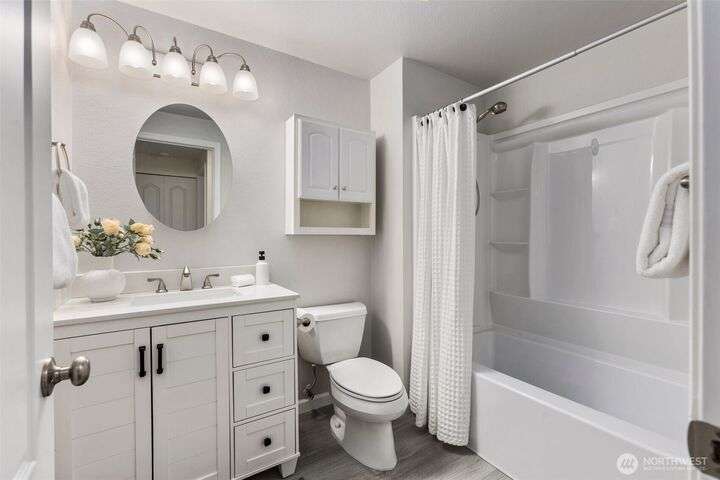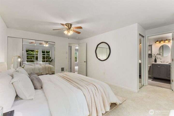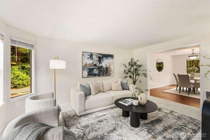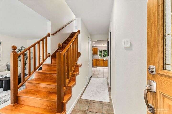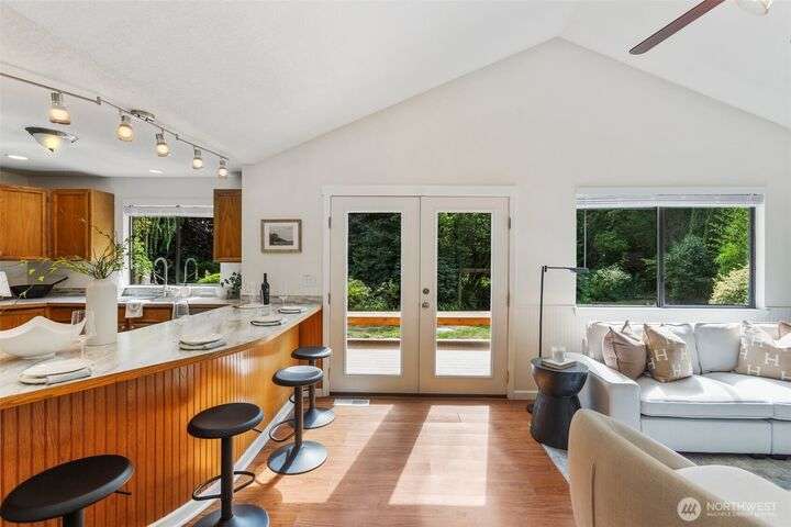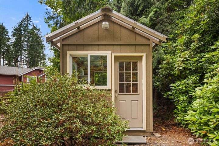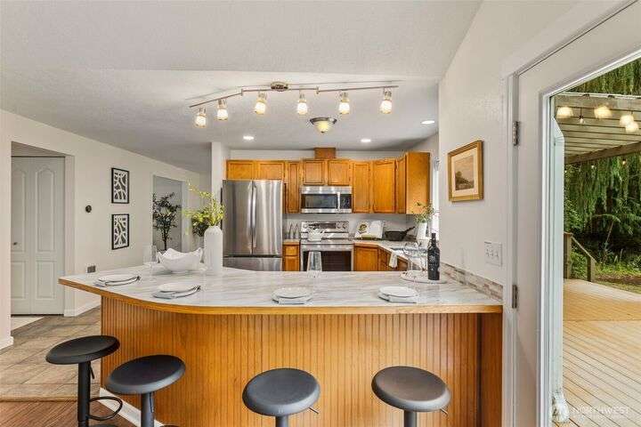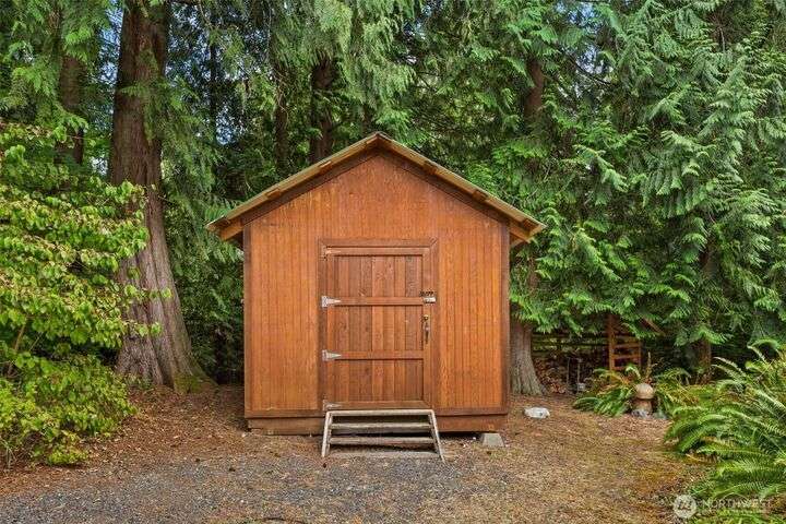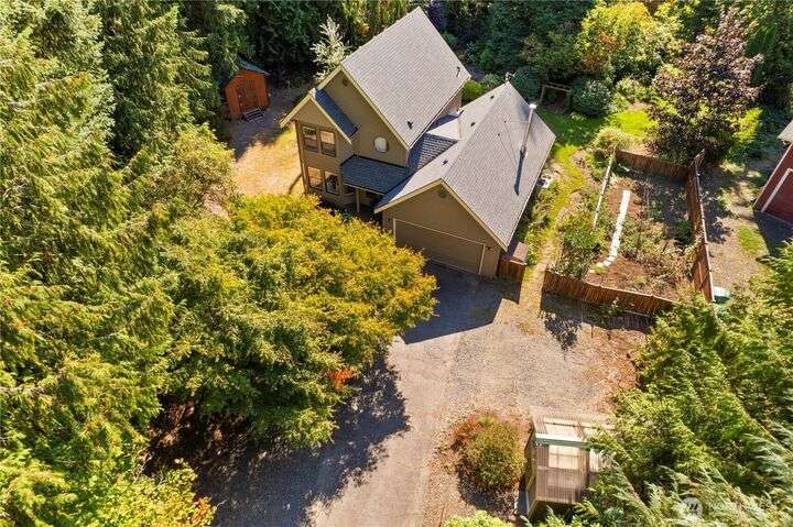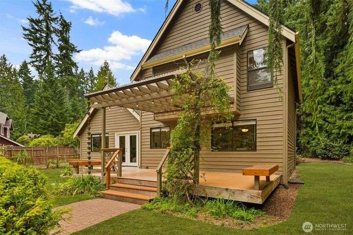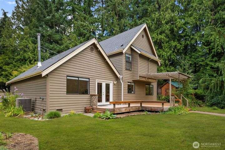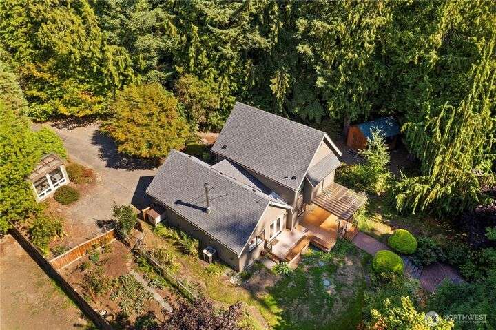 Tucked away on the Woodinville/Snohomish border, sits a charming home on a full acre in a magical park-like setting. Meandering trails wind through mature gardens, footbridges, seasonal streams & a year-round waterfall. Inside, enjoy newly painted interiors & freshly installed carpet. The light-filled kitchen offers counter seating flowing seamlessly into the living room w/ a cozy wood stove. Upstairs, find 3 bdrms including the primary. All baths have been recently remodeled or upgraded. 2024 Roof. The finished garage is wired for a shop w/ subpanel & (3) 20-amp circuits plus an EV outlet. Outside you'll find a partially covered deck & patio perfect for entertaining, detached 184 SF shop, flex space studio + RV & boat parking. A/C. No HOA.