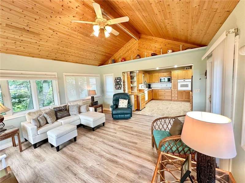 Main level living on Lake Mary with a bonus 30x24 workshop/multi-use building with in-floor heat and plumbing. Home features a huge owner's suite w/a 3/4 bathroom, double sinks, walk-in closet, and walk-out to the deck, 2nd bedroom has access to the full bath, and there is a 3rd bedroom/office. Open layout! Windows and doors in all the right places for the lake views and access to lakeside! Vaulted ceiling in living room along w/walk-out to newer maintenance free deck. Nice kitchen and eating area. Vaulted ceiling in sunroom that has new flooring and walks out to the deck as well. Enjoy the nature, peace, and privacy or entertain here. The nature walk down the dock gets you to the lake with sand bottom. Ready for you to enjoy fishing, swimming, boating, and making memories on Lake Mary! Bonus extra mulit-use building for whatever your wants or needs are! Storage shed and extra paved parking spot. Sunrises here! Come make this beautiful place your home or getaway cabin!