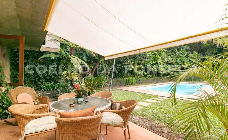 Todos os cômodos da casa com vista para o jardim com ampla piscina, muitas flores, árvores e paisagismo incrível!