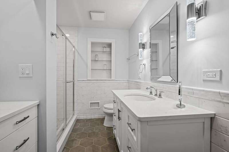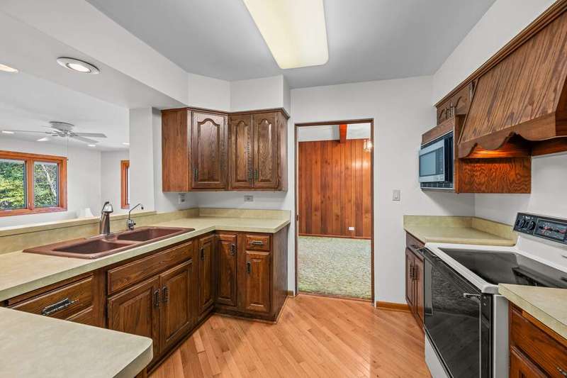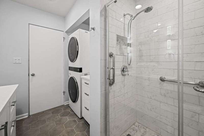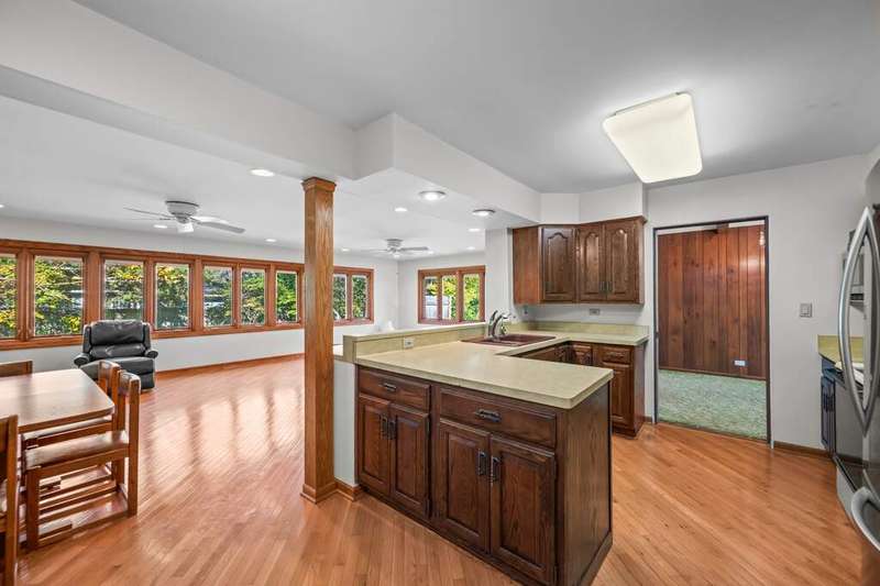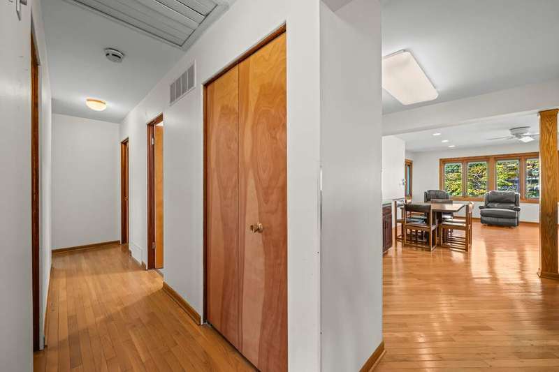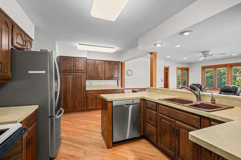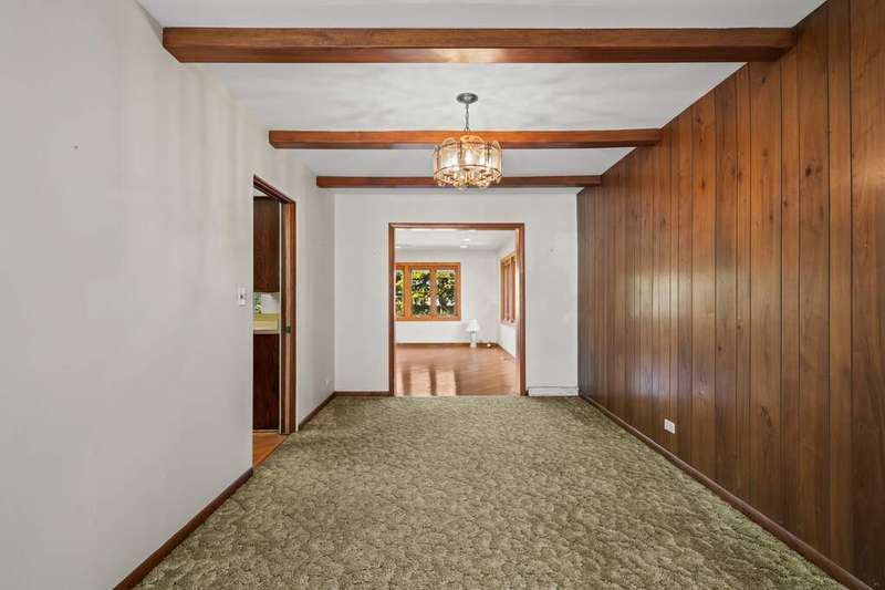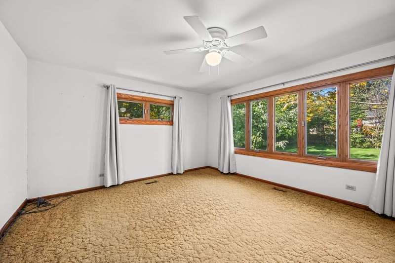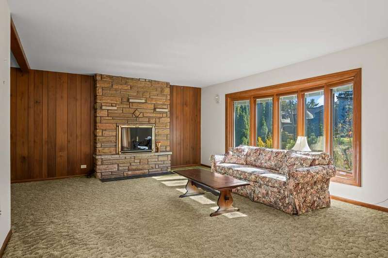 Must-see Brick Ranch with Fabulous Location! Renowned for its half-acre lots, highly rated schools and friendly community, Prospect Heights has great access to O'Hare and all transportation for commuting. The sensible addition of a family room & primary suite on this brick ranch makes the open concept layout VERY appealing to today's buyers! The smart floor plan features a large sunny family room that is open to the kitchen and affords a great flow for entertaining. The primary suite is tucked away from the other bedrooms and can also be used for a home office or in-law arrangement. Situated on a wide lot with great privacy, this desirable Olive address is on an avenue with beautiful homes and towering trees...walking distance to the public library and all schools & park district amenities (swimming pool, ball fields, tennis courts, etc.). Beautiful stone fireplace in the living room, hardwood floors throughout foyer, hallway, three remaining bedrooms, kitchen, family room, living room & dining room (under carpet). Lovely large casement windows allow for ample natural light and impressive views of the expansive backyard. Quality windows throughout trimmed with 3 1/4" oak casing. Stylish hall bathroom, fully remodeled in 2023 with gorgeous stone & ceramic tile, features large walk-in shower, convenient main floor laundry machines, storage cabinet, three-drawer base cabinet and well-lit vanity. Useful Jack and Jill half bathroom between bedrooms at west end of hall. Exterior materials include brick, vinyl siding on rear elevation, aluminum clad soffits and clad windows. Basement needs much attention, however the experienced, intuitive contractor will have the vision and know-how to convert this lower level into usable & value-added space. Mature arborvitaes frame the concrete driveway with third car extension. Newer entry doors, LG refrigerator, Bosch dishwasher and laundry machines in basement. Hot water heater replaced in 2021, Basement freezer included. Roof 2015. Wood fence 2022. Property sold AS IS with no expectations of a warranty nor of inspection.