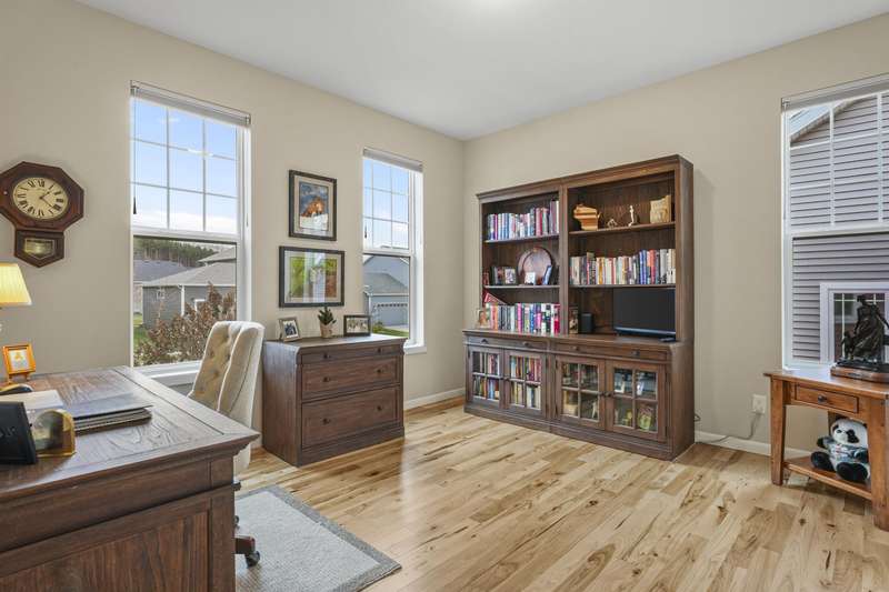 STUNNING best describes this fully upgraded 4BR/3BA ranch in The Village at Autumn Lake. Nearly 2700 sq ft with hickory floors, natural light, & open concept living room w/ gas fireplace. Gourmet kitchen offers quartz counters, pantry, SS appliances, & center island. Primary suite incls newly renovated tile shower, dual vanity, & walk-in closet w/ built-ins. Walkout and fully exposed lower level features a family rm w/ fireplace, 4th bdrm, den, & XL basement storage. Enjoy a maintenance-free deck, paved patio, fenced yard, & green space behind. Main level laundry w/cabinets & sink. Walk to park, lake and amphitheater, & dog park. Sun Prairie schools, close to shopping and easy commute. Expect to be impressed by the many upgrades this one owner has completed during ownership.