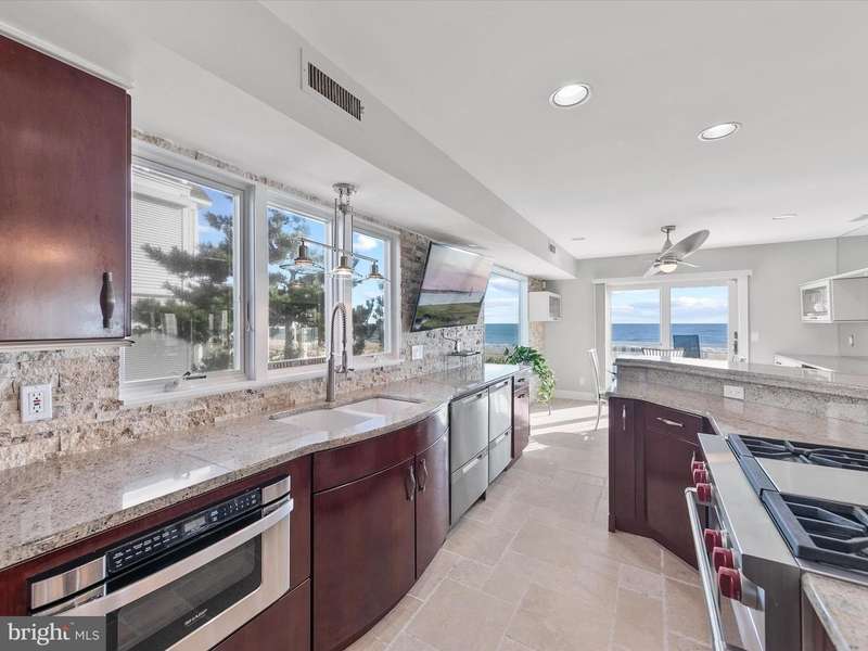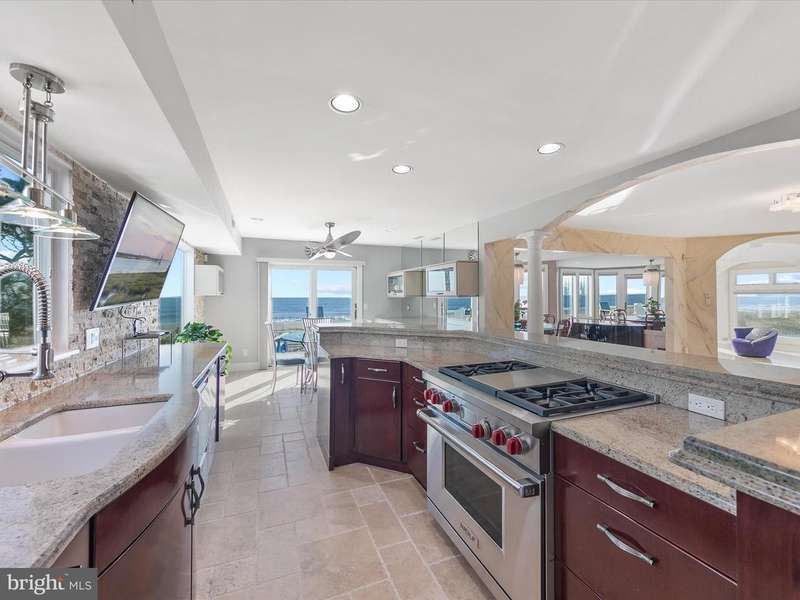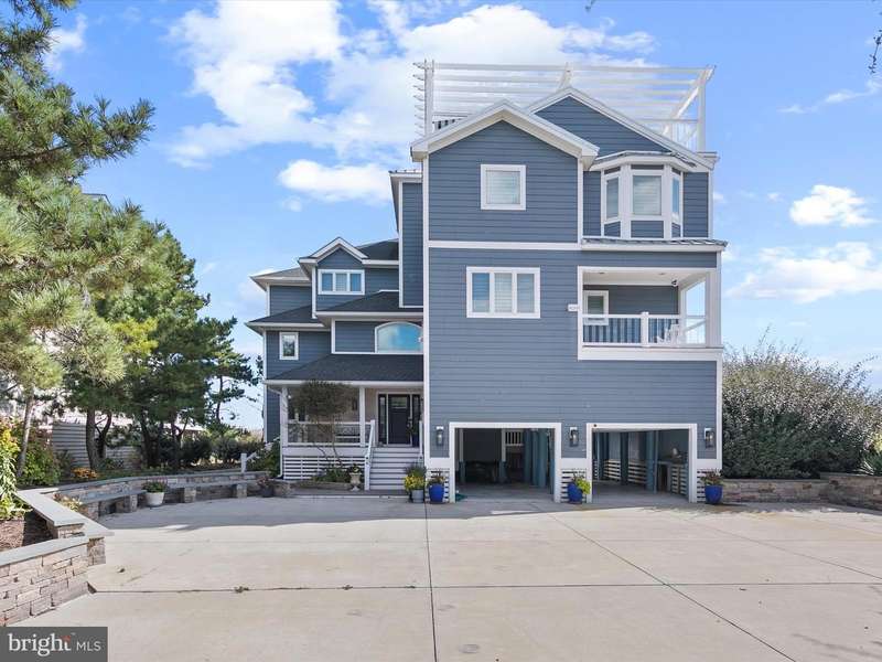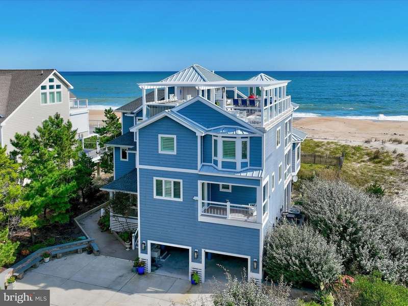 A Castle on the Beach. Discover the coastal elegance of 40110 Owens Court, an extraordinary custom oceanfront home, perfectly nestled beside Fenwick Island State Park. This luxurious coastal retreat spans four levels, offering unparalleled living and entertaining spaces with breathtaking, panoramic views of the ocean, bay, and surrounding wildlife. Updated and expanded in 2017, this home combines modern luxury with timeless coastal charm. Key updates include a new roof, siding, hurricane-proof windows, expanded living areas, and enhanced outdoor spaces, complete with new decking, railings, and an elevator. Designed to immerse you in the beauty of the ocean and bay, natural light floods every corner of the home, creating a seamless connection between indoor and outdoor living. The 2nd floor is a celebration of oceanfront living, where expansive windows and multiple balconies frame the Atlantic's stunning vistas. At the heart of this level lies the grand living room, crowned by a soaring two-story copula, offering an inviting space for gathering and entertaining while enjoying uninterrupted ocean views. The gourmet kitchen is a chef's dream, equipped with top-tier appliances including a Wolf stove, Viking fridge/freezer, two dishwashers, and a wine bar. Granite countertops, custom 42"" cabinetry, and a sprawling island with generous seating make this kitchen both functional and stylish. Adjacent to the kitchen, a cozy breakfast room offers additional display cabinetry and opens onto the balcony, perfect for morning coffee with ocean breezes. For grander occasions, the formal dining room provides an exquisite setting with the backdrop of the sea, while the family room, doubling as a theater room with surround sound, remote screen, and a fireplace, offers a cozy retreat for movie nights. This level also features two guest bedrooms, each with unique touches and access to private balconies, sharing a well-appointed bath, offering a tranquil retreat for family and friends. The 3rd level is dedicated to two luxurious bedroom suites. The primary suite is a serene sanctuary, complete with an office space, custom cabinetry, a spacious ensuite featuring a dual vanity and walk-in shower, and a private balcony offering serene bay and ocean views. The second suite is equally opulent, with a spa-like bath, access to the main deck, and breathtaking ocean views. A cozy sitting area between the suites provides the perfect nook for reading while surrounded by stunning scenery. Ascend to the rooftop deck and experience the ultimate outdoor living space. Complete with ample seating, a grill, refrigerator, dishwasher, and even a hot tub, it's an entertainer's paradise. Enjoy the tranquil ambiance of the sunset over the bay, while music from the integrated sound system fills the air. With a half-bath and extra storage on this level, every convenience is at your fingertips. The 1st level of the home offers a separate two-bedroom apartment, each with ensuite baths, a kitchenette, family room, laundry center, and access to the deck and outdoor shower-ideal for guests to have their own private space during their stay. This home also features a handicap-accessible entrance and an elevator, ensuring easy access to many of its living levels. Parking is never an issue, with a beautifully hardscaped driveway that accommodates 8-10 cars, a two-car carport, and elegant landscaping. Located just a short bike ride from the heart of Fenwick Island, you'll enjoy easy access to charming restaurants, boutiques, and entertainment. Come and experience the ultimate oceanfront lifestyle at 40110 Owens Court-where luxury, comfort, and coastal living meet.