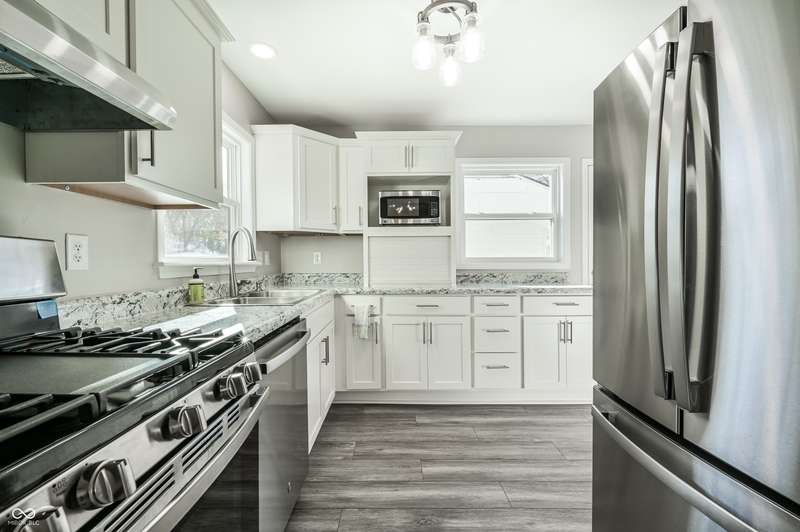 Discover the perfect blend of mid-century charm and modern convenience in this beautifully updated 3BR/1Bath home. True move-in readiness with zero worry about deferred maintenance. Enjoy year-round comfort and efficiency with a new furnace, new central A/C unit, and new water heater. The kitchen features brand new stainless steel appliances, new white cabinets and luxury vinyl plank flooring. Shiny new butter-yellow siding welcomes you from the curb. New gutters, a 2-car detached garage and fenced side-yard with an abundance of perennials make the exterior as delightful as the interior. This is more than just a renovation; it's a restoration of a classic home for the modern era. Forget the repair list-everything important is already done. No HOA, or rental cap so this could be your forever home OR a timeless investment. Just minutes away from I-465 off the Shadeland exit, you can be downtown in 30 minutes. Schedule your showing starting Friday Nov 14th and experience the quality of this exceptional, updated property!