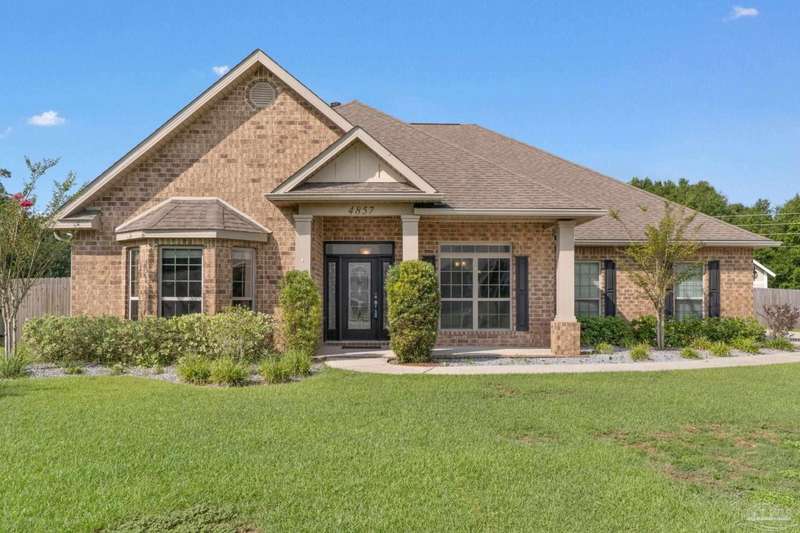 Welcome to this breathtaking brownstone brick custom-built home, completed in November 2024, located on a sprawling 2.66-acre lot in the highly sought-after Pace, Florida. With impeccable attention to detail, this home blends modern luxury with practicality, offering the perfect retreat for both relaxation and entertainment. The home comes equipped with a smart doggy door, ensuring convenience for your furry family members, while the entire home is designed with modern, easy-to-use technology that enhances daily living. The chef's kitchen features sleek granite countertops, perfect for meal prep, with ample storage and a layout that flows seamlessly into the rest of the home. The spacious master suite offers a private sanctuary, complete with oversized his and her walk-in closets. A spa-like master bath provides the ultimate place to unwind after a long day. The property includes a 24x36 metal building with electric, providing ample space for a workshop, storage, or additional vehicles. The possibilities are endless! Also included with this home is a 30 AMP Hookup as well as sewage for an RV! Situated just a short drive from Pensacola Beach, you'll have quick access to white sandy shores and the Gulf Coast's stunning waters. Plus, the natural beauty of Blackwater River is right at your doorstep, offering endless opportunities for outdoor recreation, from kayaking to hiking. Whether you're looking for a peaceful retreat or a place that's close to everything, this home provides the best of both worlds. Schedule your tour today and see for yourself why this is the ideal place to call home!
