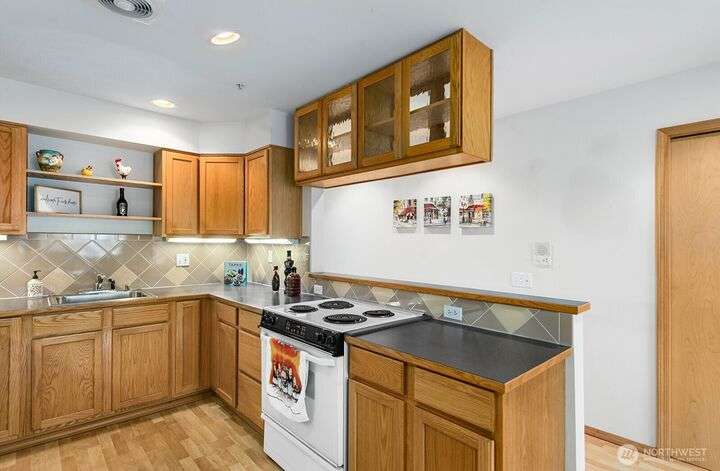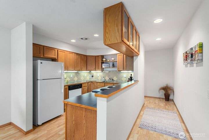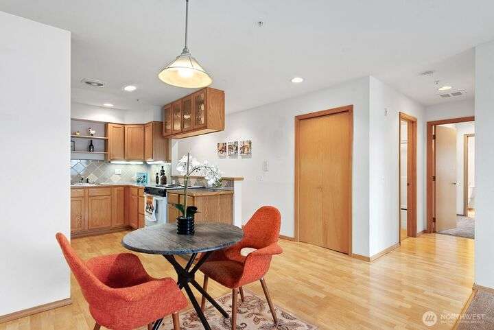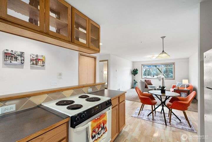 Prime location for this 2 bed 1.75 bath in desirable Wedgwood neighborhood. This corner unit offers territorial views & plenty of natural light that flows into the living area and both bedrooms. Enjoy a spacious kitchen with tile backsplash and plenty of countertops & wood cabinetry. New hot water tank, too. Secure common garage with private storage & secure main entry with elevator for convenience. Central location for both walking and biking. Near Fiddler's Inn Pub, Veterinary, Meadowbrook Community Center and pool and close to Matthew's Beach, Nathan Hale HS, Wedgwood Elementary, groceries, gas station & auto services. Just a quick trip to U-Village & University of WA. On bus route for easy access to downtown Seattle & UW.
