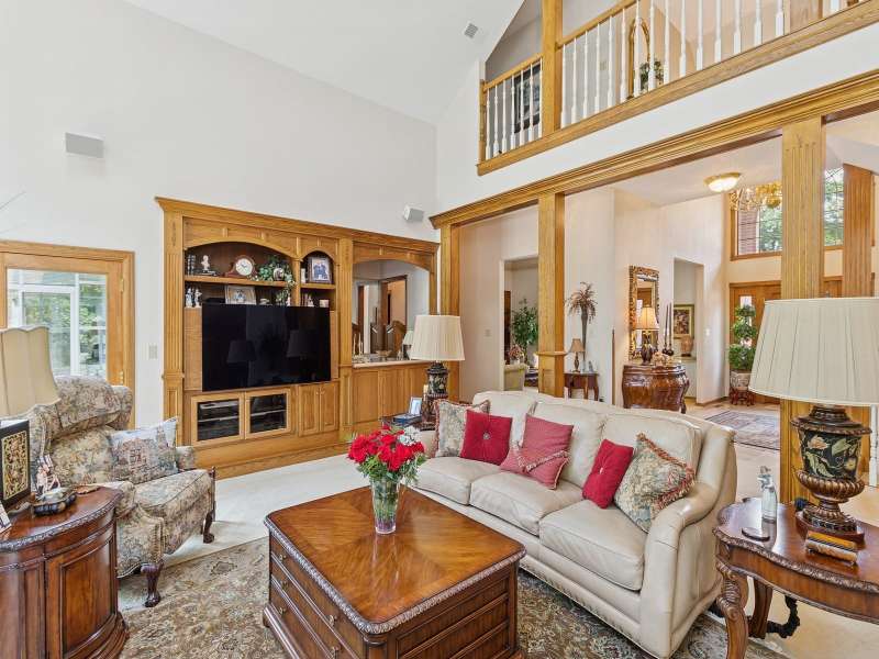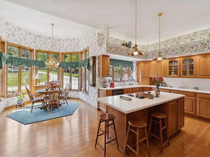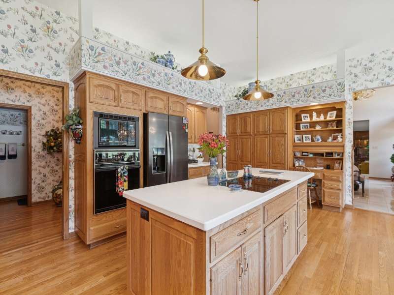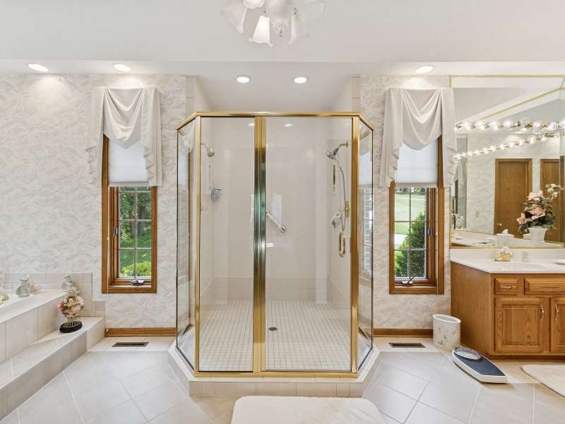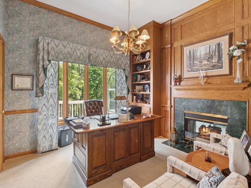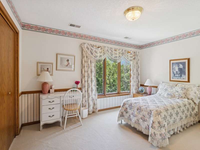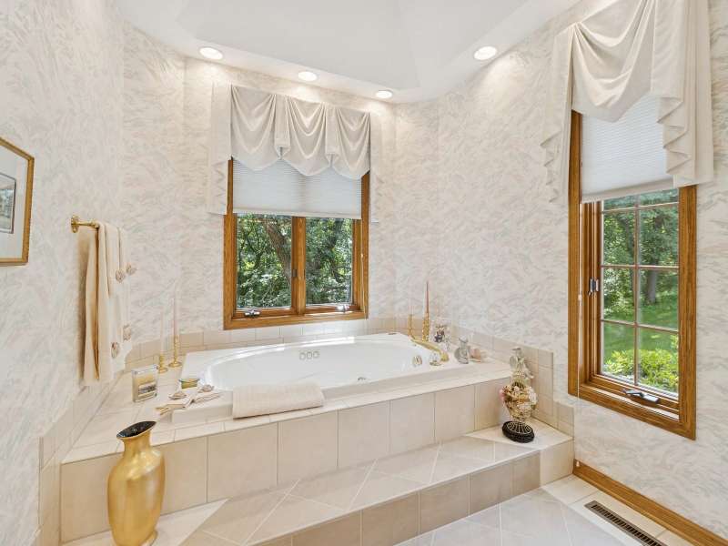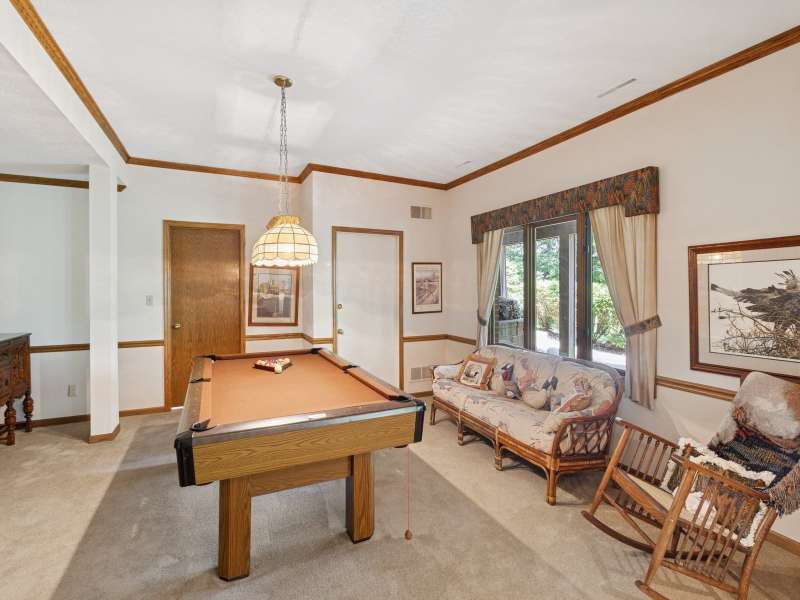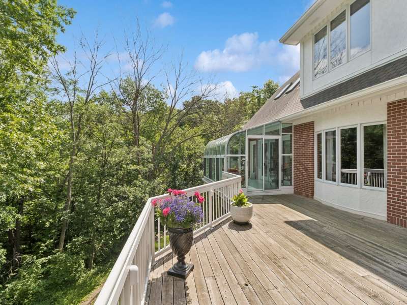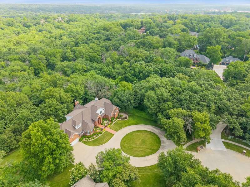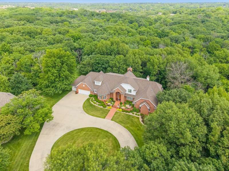Located in Parkhaven, a luxury neighborhood, on a 2.2 acre private wooded lot, at the end of a cul-de-sac, is this 6,358 SF 1.5 story home with 5 BRs, 6 baths and a 4 car tandem garage. It is a one owner custom home, built by renown builder Rocky Rothchild and backs to the 98-acre Jordan Creek Nature Park. The first floor has the primary bedroom with his & her closets; primary bath with whirlpool tub, tile shower & two sinks; vaulted great room with floor-to-ceiling window & fireplace; large eat-in kitchen with island; office with built-ins plus see-thru gas log fireplace; formal dining room with built-in buffet; formal living room; all-glass sun room; laundry room with sink and lots of storage. The second floor has three more bedrooms and 1 baths. The walk-out basement has a large 20 x 33 family room with walk-behind wet bar; billiards room, another office/bonus room, 5th bedroom, 3/4 bath, lots of storage and stairs from the basement to the garage. Zoned heating and cooling that averages $270 per month for Midamerican Energy gas & electric. It will cost $2.2M to build this home today.
