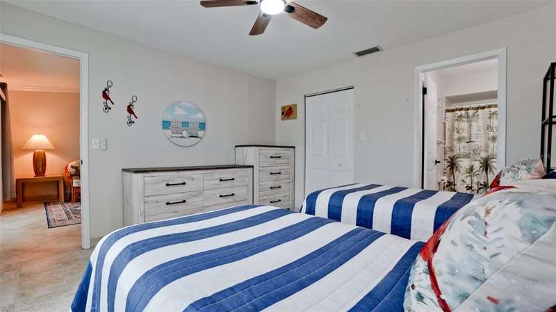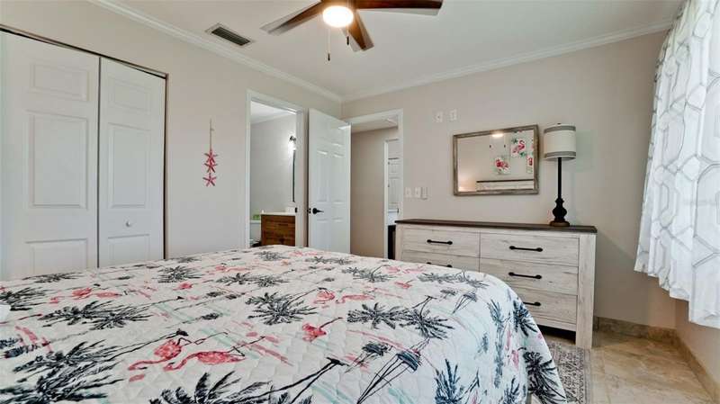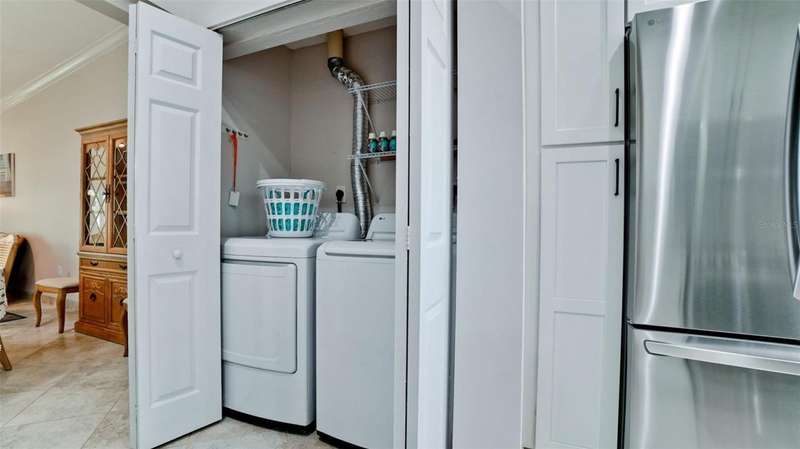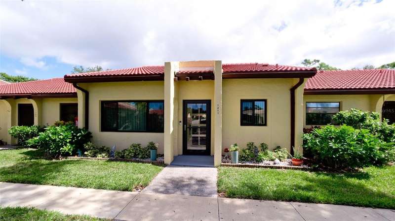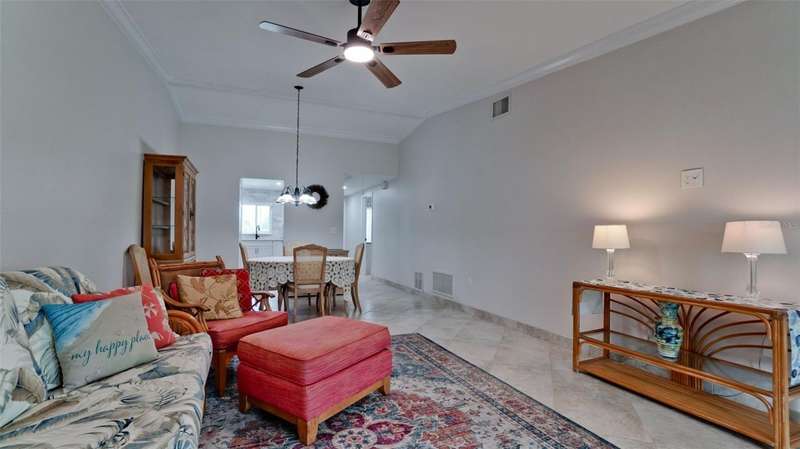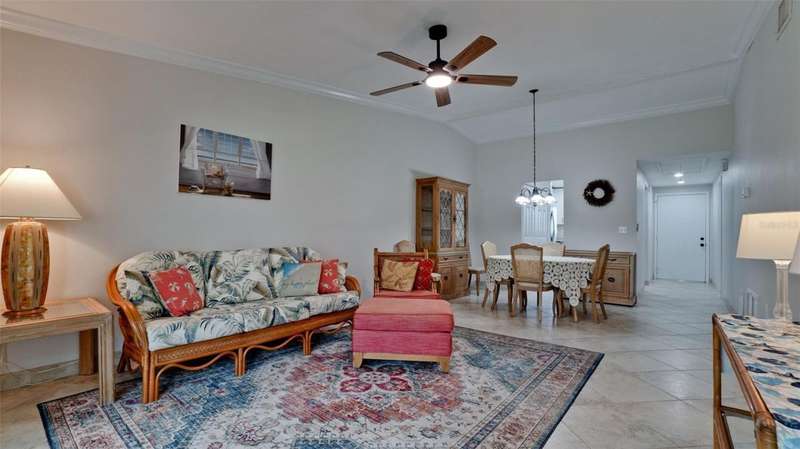 Under contract-accepting backup offers. Welcome to this beautifully updated and furnished 2 bedroom, 2 bath villa in the desirable 55+ community of Meadowcroft. Enjoy peace of mind with new hurricane impact windows and sliding door (2024) AND brand new screened lanai/porch (2025) perfect for morning coffee or evening relaxation. Step inside to an open, light-filled living room with vaulted ceilings and modern fixtures, creating a spacious and inviting atmosphere. The kitchen is a showstopper with 42 inch cabinets, quartz countertops and stainless steel LG appliances, including a washer and dryer. Both bathrooms have been tastefully remodeled with new vanities, tile and fixtures - the primary bath features a sleek walk-in shower, while guest bath offers a convenient tub-shower combination. Meadowcroft offers resort-style amenities , including a heated pool, clubhouse, tennis and pickleball courts, all in a vibrant welcoming community. Conveniently located near shopping, dining and a Florida lifestyle. Monthly fee of $579 per month covers: cable, Internet, exterior maintenance, pest control, water, sewer and trash. Includes an assigned single car carport (first step from walk-way to your left), new carport roof and structure/supports (2025). NOTE: Trim notice for 2025 property taxes are $0.00. Seller is exempt.