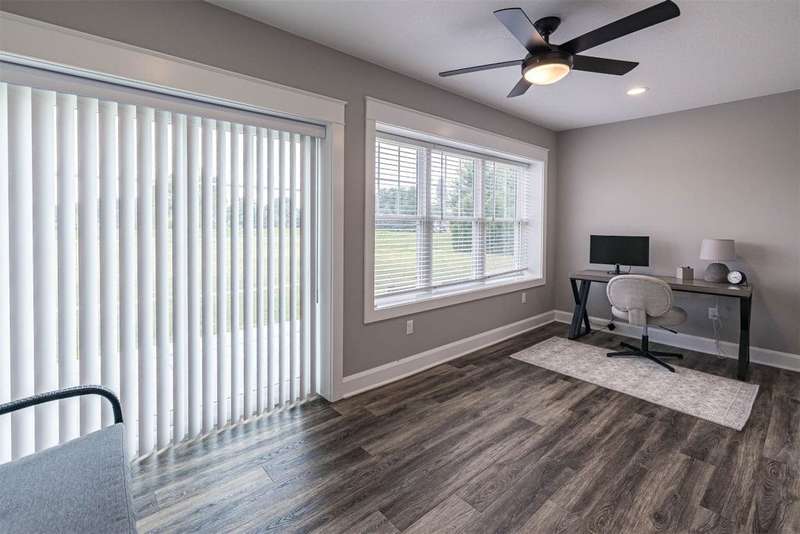 Move right in to this Turn-key newer construction home in Whistle Run subdivision. Custom built for single story living and no steps, this meticulously constructed Dave Thornton home is now available. You'll find elevated craftsmanship, stunning details and modern fixtures and amenities. Featuring a primary bedroom with walk-in closet and an exquisite tiled private bathroom. Home also includes a secondary bedroom with a full bathroom and plenty of closet space. Open floor-plan layout offers generous room for entertaining and living with accessible kitchen, dining area and living room - fully applianced! You'll adore the back enclosed sunroom with sliding door walkout to the backyard. Convenient mudroom/laundry area just off of the attached 2-car garage. Make the seamless transition to your upgraded space.