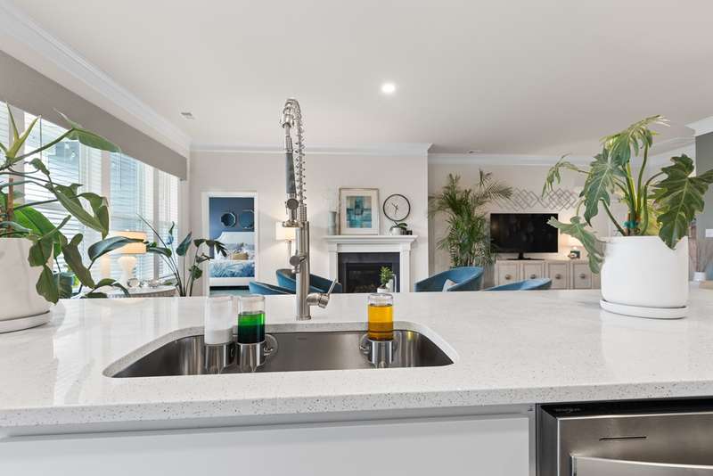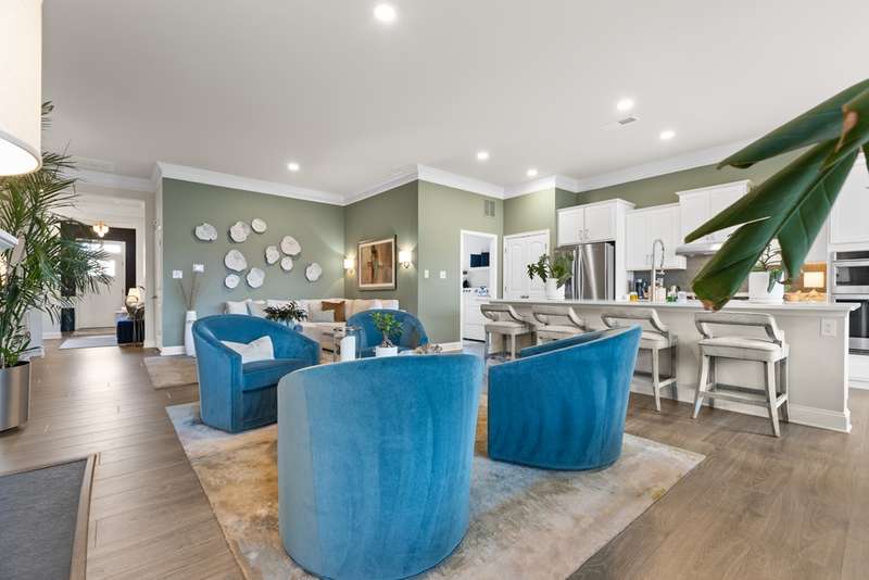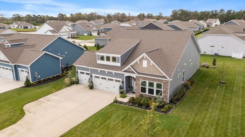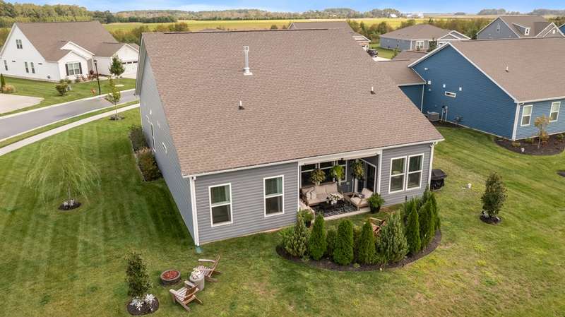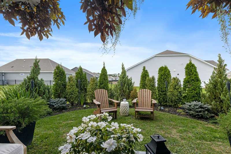Move right in to this beautifully upgraded Azalea model, set on a landscaped lot with a rare 3-car garage offering great storage and room for two vehicles. Inside, 10’ ceilings, luxury vinyl plank flooring, and a stone fireplace with blower create a warm, open feel. The kitchen features oversized quartz counters, GE Profile stainless appliances, a 6-burner gas range, built-in microwave, soft-close cabinets, and a large pantry. The spacious primary bedroom features a tray ceiling, crown molding, walk-in closet, and bathroom with dual vanities, walk-in shower with seat, linen storage, and private water closet. Two guest bedrooms and a full hall bath sit at the front of the home. A laundry room with extra cabinetry connects to the garage. Outside, enjoy a covered rear porch and privacy landscaping. Added bonuses: a private well for the sprinkler system, minutes to beaches, Prime Hook trails, and The Rookery Golf Course.