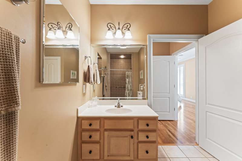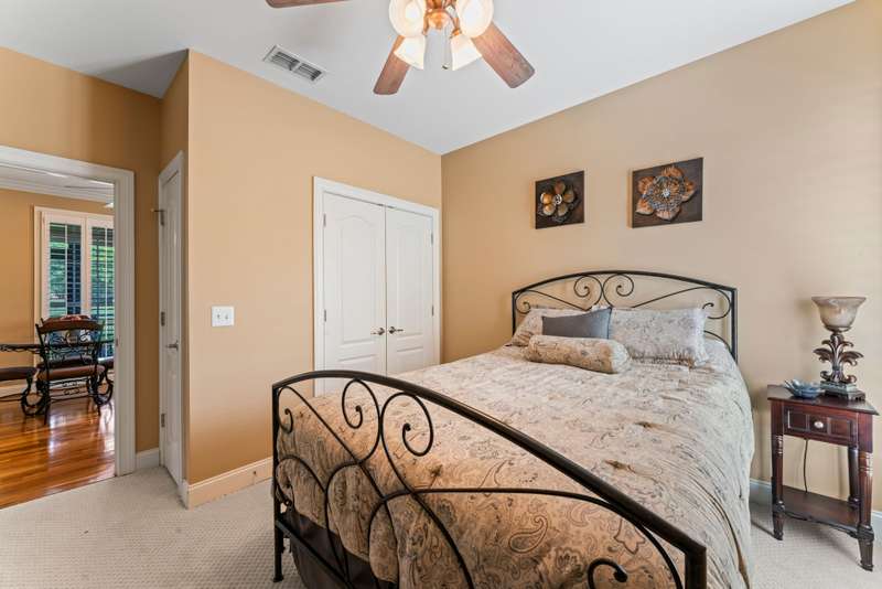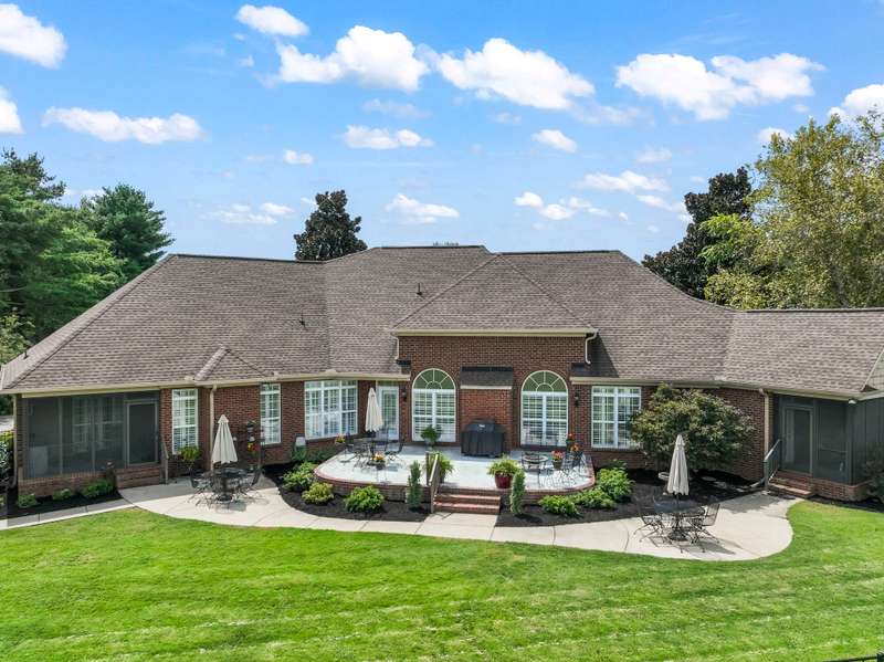 One level living (except bonus room up) including inlaw apartment with screened porch. All on the #10 tee box. Custom built home with many upgrades and totally renovated. Large windows, with great views, 2.5 car garage, owner's retreat with sitting area or office and screened porch. Large raised deck, fenced yard. Circular drive in front with rear garage and plenty of parking space. Located near community pool, tennis/pickleball courts, and playground. Home is currently under contract with Sale of Home Contingency and 24hr Buyer First Right of Refusal