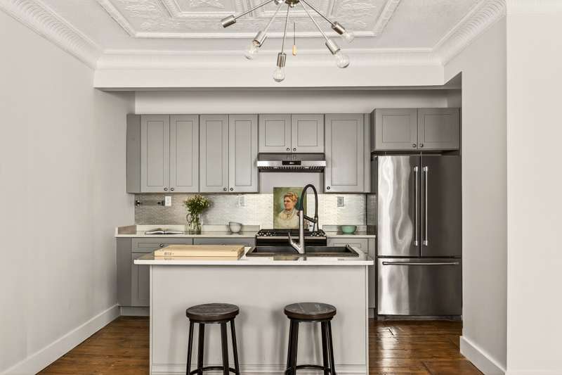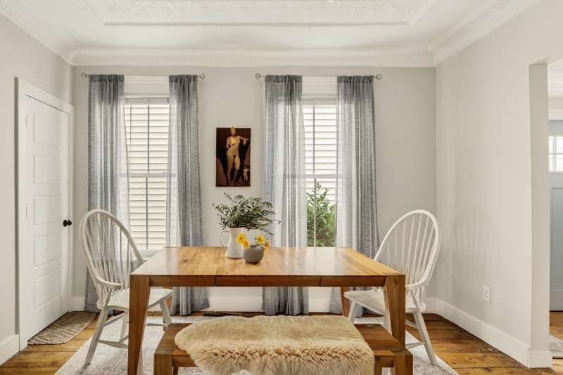 Welcome to Fritts Crawford House, a beautifully updated circa 1890 Victorian two-family home just steps from Hudson's vibrant upper Warren Street. This 2,058-square-foot property offers three bedrooms, two full bathrooms, and rare off-street parking for up to five cars. Original tin ceilings and pine floors preserve the home's historic character, and a host of recent upgrades, including a new roof, updated windows, and extensive structural and mechanical improvements ensure peace of mind for years to come.The first-floor one-bedroom residence features a newly renovated bathroom with marble floors and a deep soaking tub, and in-unit washer/dryer. The eat-in kitchen is a showstopper with quartz countertops and top-of-the-line stainless-steel appliances, opening to a refined living room with an elegant decorative mantle and oversized windows that fill the space with light. Upstairs, an inviting two-bedroom apartment features wide plank wood floors, a sun-drenched kitchen with butcher block counters, a Bosch dishwasher, and a newly finished bathroom with extra-deep soaking tub and high-end Delta fixtures. Every detail has been refreshed, from new paint and lighting to updated plumbing, electrical, and a separate central air and furnace system. Outside, enjoy a rocking chair front porch and a fenced backyard with a raised deck, garden beds, and mature maple tree. Located on a quiet, friendly block, the home is an easy stroll to galleries, shops, and restaurants along Upper Warren Street. Walk to Caf Mutton for morning coffee, grab fresh produce at the Hudson Farmers' Market, or enjoy dinner at Rivertown Lodge without needing a car. With two fully updated units, off-street parking, and a prime downtown location, Fritts Crawford House offers a combination of immediate income potential, historic charm, and effortless Hudson living.