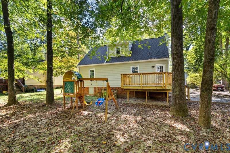 Welcome to this charming Cape Cod tucked away in the heart of highly desirable Brandermill in Midlothian. Lovingly maintained and thoughtfully updated, this freshly painted home features 3 bedrooms, 2 full baths, and 1,436 sq. ft. of comfortable living space. Step inside and you're greeted by a warm and inviting living room centered around a cozy wood-burning fireplace, complemented by new LVP flooring that continues throughout the main living areas. The adjoining dining room creates a natural flow for gathering and features a wainscot trim accent wall, while the first-floor bedroom and updated full bath provide convenience and flexibility. The beautifully updated, tablespace kitchen is a true highlight, featuring granite countertops, a stylish tile backsplash, stainless steel appliances, newer cabinetry, and vertical trim accent walls that add modern character. Stylish shiplap trim frames the stairwell to the 2nd floor. Upstairs, you'll find two additional bedrooms with ceiling fans and a second updated full bath with newer vanity and LVP flooring. Outside, enjoy a brand-new deck (2024), generous off-street parking, a detached shed, and a large level backyard-perfect for entertaining or simply relaxing. Recent improvements, including a new HVAC (2022), roof (2018), and vinyl windows (approx. 2018), offer peace of mind for years to come. Life in Brandermill offers more than just a home-it's a lifestyle. Residents enjoy access to the scenic 1,700-acre Swift Creek Reservoir, 15 miles of paved trails, playgrounds, pools, and so much more. This is a wonderful opportunity to own a beautifully cared-for home in one of Chesterfield's most sought-after communities.