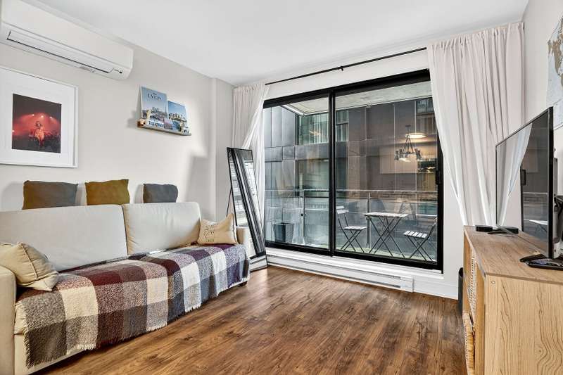 For sale: charming one-bedroom condo in a recent building (2020) offering a modern and complete lifestyle. Enjoy a high-end building with all services: swimming pool, fully equipped gym and ideal common room for teleworking or reception. The room enjoys a unique view of the mythical Five Roses, a true emblem of Montreal, adding a touch of character to your daily life. A functional, bright and well-thought-out living space, perfect for a first purchase, a foot-down in the city or an investment. Located in a sought-after area, this condo combines comfort, modernity and location of choice.