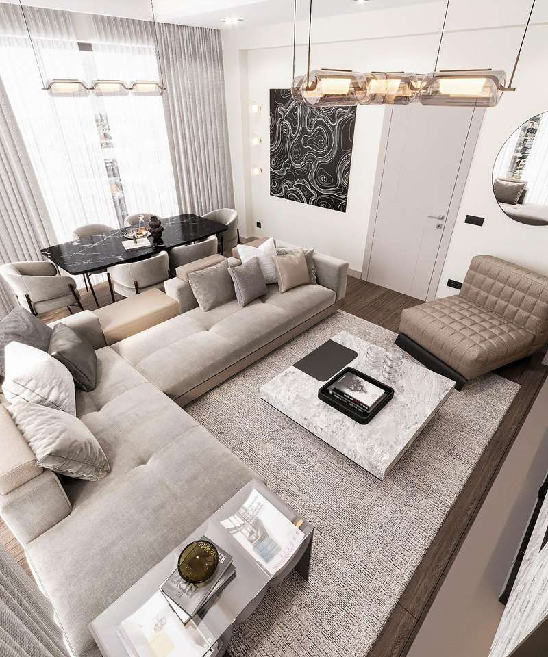 Apartments are offered for sale in different types. 1-bedroom apartments have a living room, open plan kitchen, bedroom, bathroom and large balcony. 3-bedroom apartments have a living room, separate kitchen, en-suite bathroom, 3 bedrooms, shared bathroom and balcony.