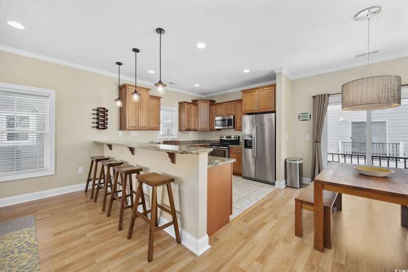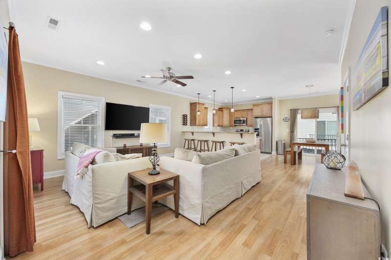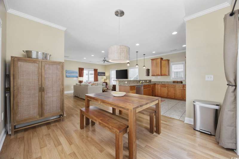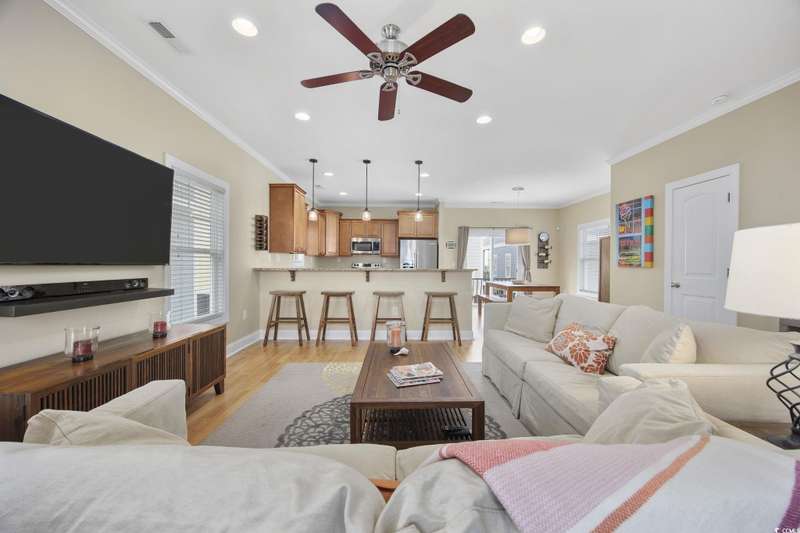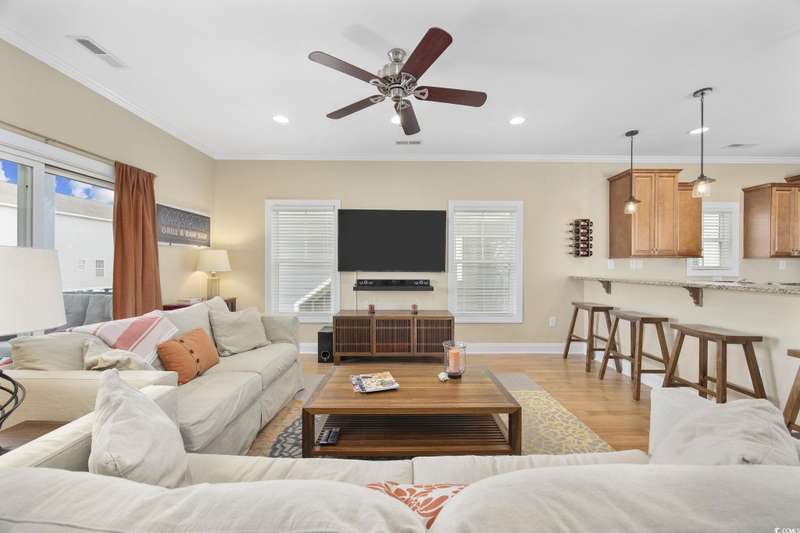 This fabulous fully furnished 3BR/2.5BA raised beach house is conveniently located in a 2nd-row community just steps away from everything Garden City has to offer! Enjoy a short walk to the pier, fishing, restaurants, arcade, lively bars, and of course, the beautiful beach. This private, fenced in neighborhood offers peace and seclusion, keeping vehicle and foot traffic at bay. Built in 2012, this home features quality upgrades, including Hardie Plank concrete siding, metal roof, and spray foam insulation for superior energy efficiency and quiet comfort inside. The open interior boasts granite countertops, stainless steel appliances, and low-maintenance flooring throughout. The large covered exterior storage closet is perfect for stowing beach gear, paddle boards, grills, and more. Enjoy relaxing by the community pool or take advantage of short-term rental opportunities for added investment potential. Don't miss this opportunity to make your dreams come true!