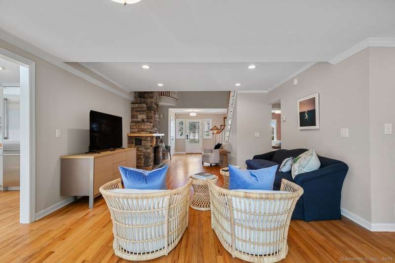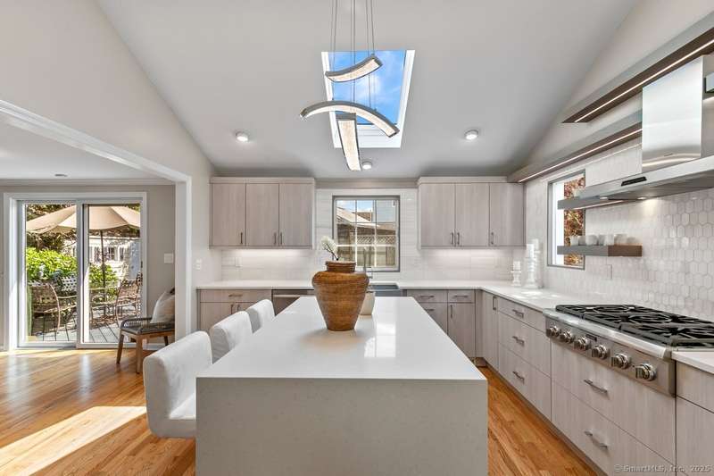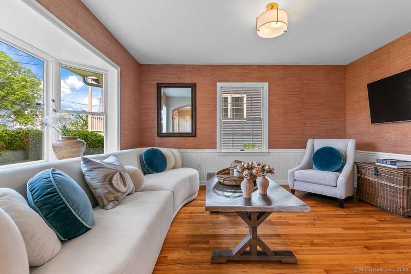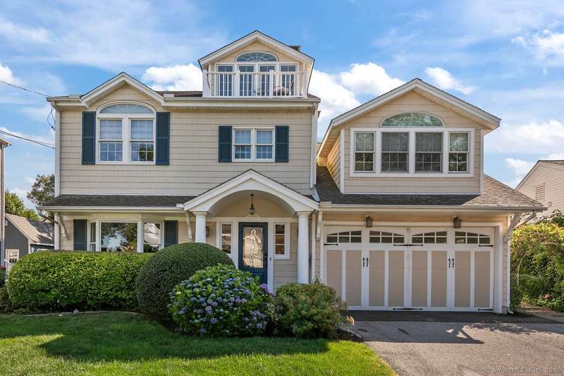 A coastal Connecticut entertainer's dream, this newly updated home is located on a quiet cul-de-sac in the highly desirable Gregory Point neighborhood. With deeded beach access just steps away, you can enjoy stunning sunsets from the sand, your kayak, or stand-up paddleboard. The flexible and open floor plan is designed for both everyday living and seamless entertaining, featuring a two-story fireplace crafted with masterful detail and a custom kitchen designed by award-winning Karen Berkmeyer, as seen in New England Home Magazine. Coastal-curated landscaping and a meticulously maintained exterior enhance the home's charm, while the expansive third-floor bonus space, with water views and a private balcony, offers the perfect spot to relax or host. A first-floor primary suite is also a possibility thanks to the versatile layout. From thoughtful design to exceptional craftsmanship, this Gold Coast gem will wow you at every turn.