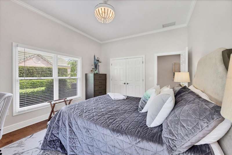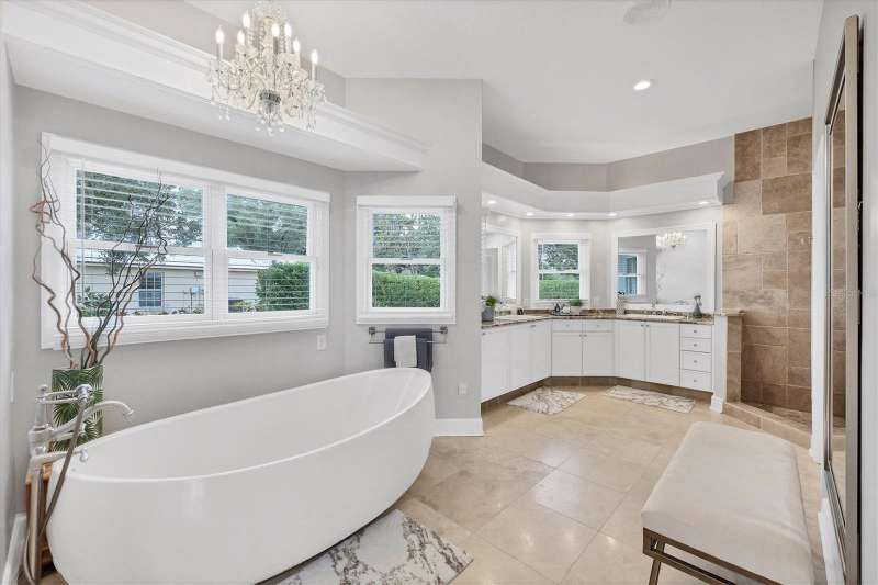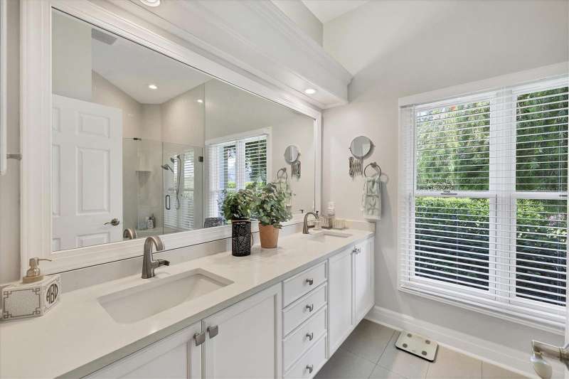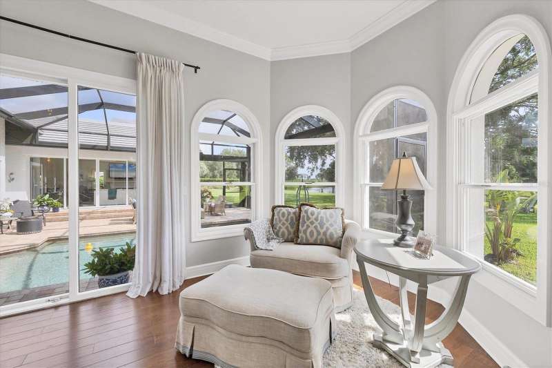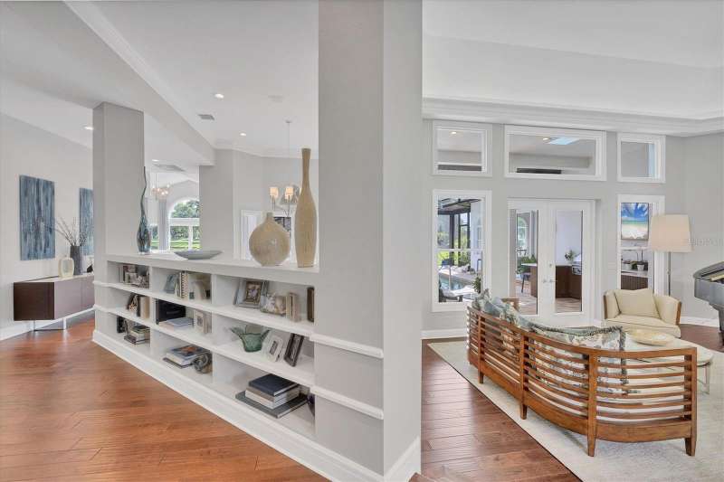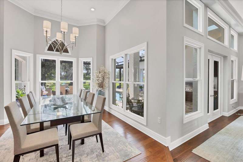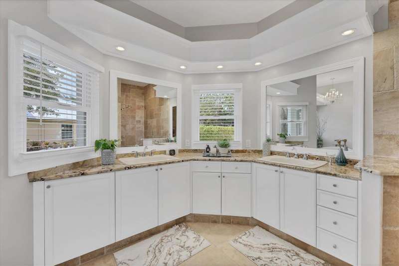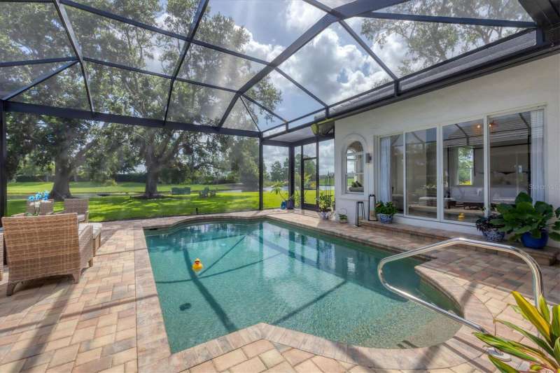 A rare opportunity in Laurel Oak; a stunningly renovated move-in ready custom estate being offered with a $35,000 buyer credit for customization or closing costs. Set on a peaceful half-acre lot adorned with majestic oaks and swaying palms, this beautiful 4-bedroom, 4-bathroom home offers over 4125 square feet of modern luxury, architectural charm, and breathtaking views. Soaring vaulted ceilings, custom crown molding, accent tile walls, and designer light fixtures and chandeliers add elegance throughout. The interior has been freshly painted and designed to enhance the natural light that pours into every room. You will feel the high-quality craftsmanship the moment you enter this home; it has been thoughtfully updated to the highest standards. The heart of the home is the stunning 2024 kitchen remodel, featuring Café appliances, quartz countertops, a Brizo touch faucet, instant hot water, under-counter filtration, and a spacious cabinet pantry. Lutron-controlled under and over-cabinet lighting creates an inviting ambiance, perfect for both daily living and entertaining. The expansive primary suite is a private retreat with pool views, two walk-in closets, and a spa-like bathroom with a freestanding soaking tub, oversized shower, and dual vanities. The three generously sized guest bedrooms offer unique details and exceptional comfort. The unique floor plan boasts views of the heated pool from almost every room. The large lanai features a panoramic screen that frames the tranquil lake in the backyard, where deer and birds frequently visit, and an outdoor kitchen with a Lynx built-in grill, drink cooler, custom cabinetry, and matching quartz counters. There is a dedicated pool bath accessible directly from the lanai – all creating an ideal addition for effortless entertaining. This smart home includes a Nest thermostat, security system, smart door locks, programmable irrigation, and outdoor lighting, plus a Tesla charger and a 2022 roof for peace of mind. Laurel Oak offers 24/7 guard-gated security, two championship golf courses, tennis and pickleball courts, a junior Olympic swimming pool, vibrant clubhouse, and reciprocal membership with Bird Key Yacht Club. Membership is available but not required. Enjoy the best of Florida living in a truly unique and luxurious home.