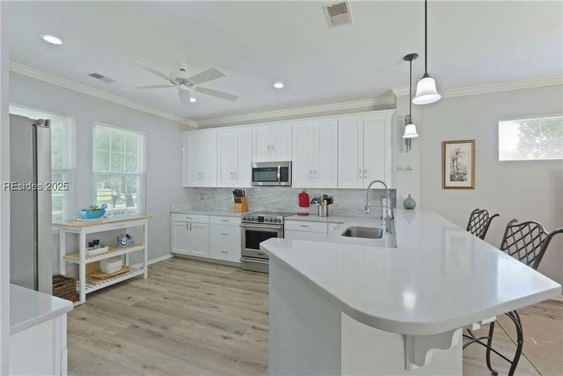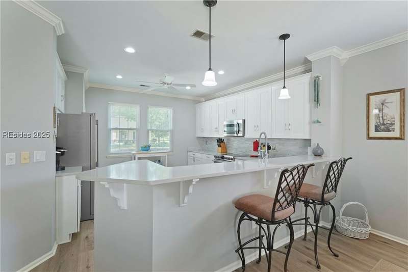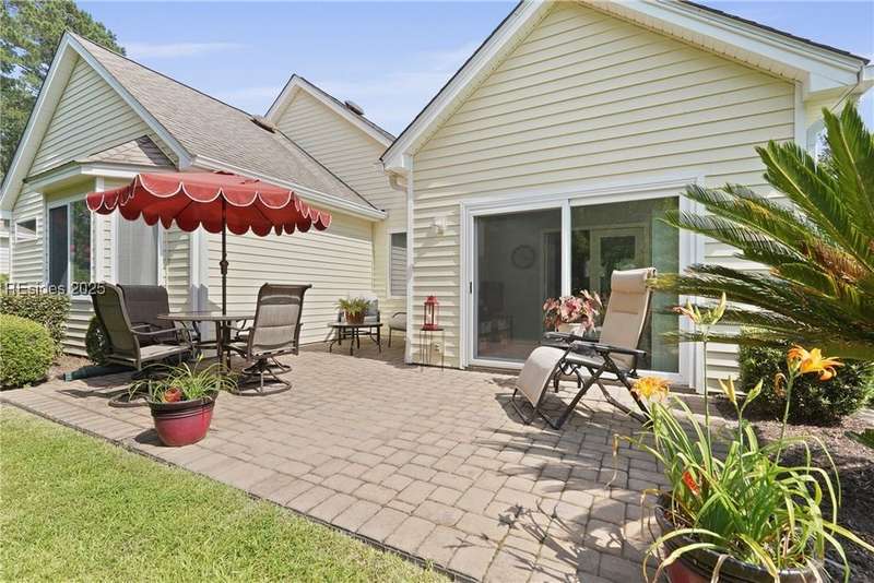 Located on a private cul-de-sac in the desirable SUN CITY HILTON HEAD community, this charming updated Washington model offers an open floor plan w/ 3 Bedrooms (or 2BD and flex/office), 2 full baths & a Carolina room you can enjoy all year round. A paver patio opens up to tranquil backyard. The kitchen was recently remodeled w/ stainless steel appliances, white cabinets & a stylish backsplash. Detailed crown molding in the main living areas. No stucco & Beaufort County taxes! Enjoy peaceful living just a short walk to scenic Lake Somerset amenity center.Sun City Hilton Head in Bluffton, SC, is a premier 55+ community spanning over 5,000 acres, offering an unmatched resort-style lifestyle. Residents enjoy 54 holes of golf across three scenic courses, six pools (including indoor lap and leisure pools), and three fully equipped fitness centers with classes and studios. The sports park offers tennis, pickleball, bocce, softball, volleyball, croquet, and more. Social and creative outlets abound with a ballroom, 16,000 sq ft performing arts theater, arts and crafts studios, woodworking shop, billiards, card rooms, and a library. Outdoor enthusiasts appreciate the Lake Somerset and Riverbend Docks, fishing, miles of walking and nature trails, community gardens, and three dog parks. There are over 150 clubs covering everything from arts and music to technology and lifelong learning. Additional amenities include on-site restaurants, RV and boat storage, and a secure, gated environment with convenient access to Hilton Head beaches, Historic Savannah and Charleston along with local shopping, dining, and healthcare. Sun City is also expanding with a new multimillion-dollar resort style amenity center coming soon!