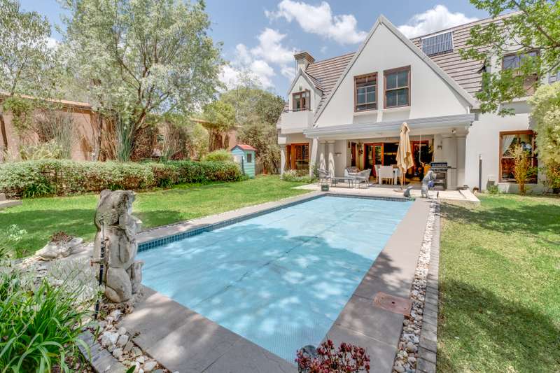 Welcome to a lifestyle of elegance, security, and space in one of the area’s most prestigious gated estates. This beautiful 4-bedroom, 2,5-bathroom home is perfect for families or those who enjoy entertaining, offering everything you need to live in style and comfort. Step into the heart of the home, where a modern, fully equipped kitchen awaits, complete with high-end finishes, ample storage, and a spacious design ideal for culinary creativity and gathering friends. Flowing seamlessly from the kitchen, the open-plan living areas are bathed in natural light, thanks to the stunning glass conservatory, a unique feature that gives the home a fresh, airy ambiance. Outdoors there is plenty of space to relax or entertain. Take a dip in the private pool or unwind on the patio-perfect for sunset cocktails or weekend braais .Set on a generous double stand, this property blends sophistication, space, and privacy for a truly exceptional living experience. This home also includes a spacious one-bedroom cottage, ideal for guests, extended family, or as a separate rental for added income potential. With all the benefits of estate living – high end security, exclusive amenities, and a peaceful, community- focused environment- this property is a rare find. There are only 5 double stands in this estate. This home is located minutes from top-rated private and public schools, this home ensures a seamless school commute. Additionally, your just around the corner from major centers and all essential amenities. This property boarders on the prestigious Bryanston country club, providing members with a wide range of amenities including an 18-hole golf course, driving range, dining options, padel courts, tennis courts, bowls, and a scenic walking trail. Perfect for those who enjoy an active lifestyle in a beautiful setting! Additional features: Free-standing gas stove Wood burning fire place Inverter Water tanks A home with so many possibilities. Call me for a viewing today