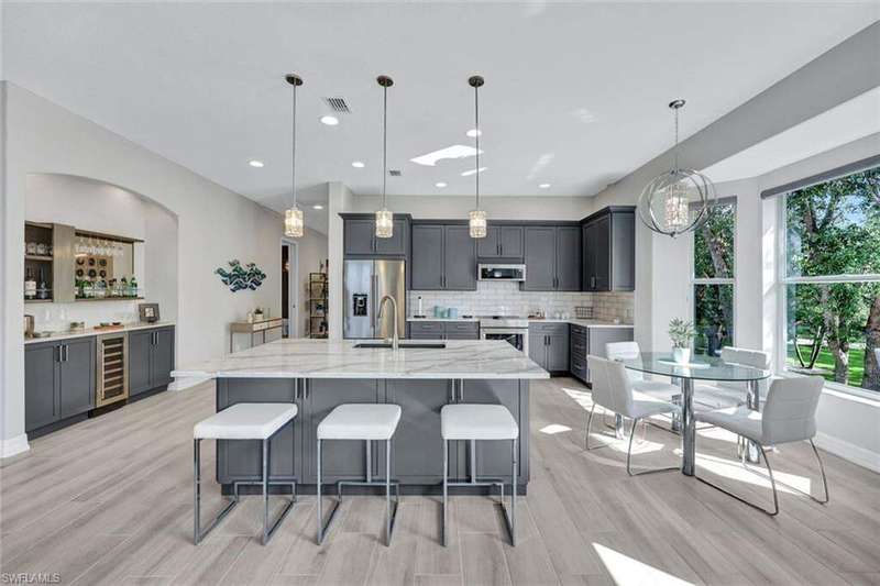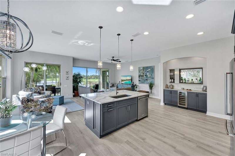 Experience luxury living at its finest in one of Naples' most desirable golfing communities - Kensington Golf & Country Club. This impeccably remodeled end-unit condo offers one of the best views in the entire community - a sweeping 180-degree panorama of the full length of the golf hole, perfect for enjoying morning coffee or an evening glass of wine on your private lanai. Showcasing one of the most stunning renovations in Kensington, this residence blends modern sophistication with timeless design. Every detail has been thoughtfully curated, featuring high-end designer appliances, premium finishes, and luxury upgrades throughout. Furnishing may be purchased at an additional cost. Kensington Golf & Country Club is a member-owned private community known for its award-winning 18-hole championship golf course, lighted tennis and pickleball complex, state-of-the-art fitness center, and full-service day spa. Residents also enjoy resort-style pools, fine and casual dining, and an active social calendar - all within a secure, beautifully maintained setting. While there is a wait list for full golf all other memberships are available. Live the ultimate Southwest Florida lifestyle in a location just minutes from Naples' pristine beaches, upscale shopping, and premier dining.