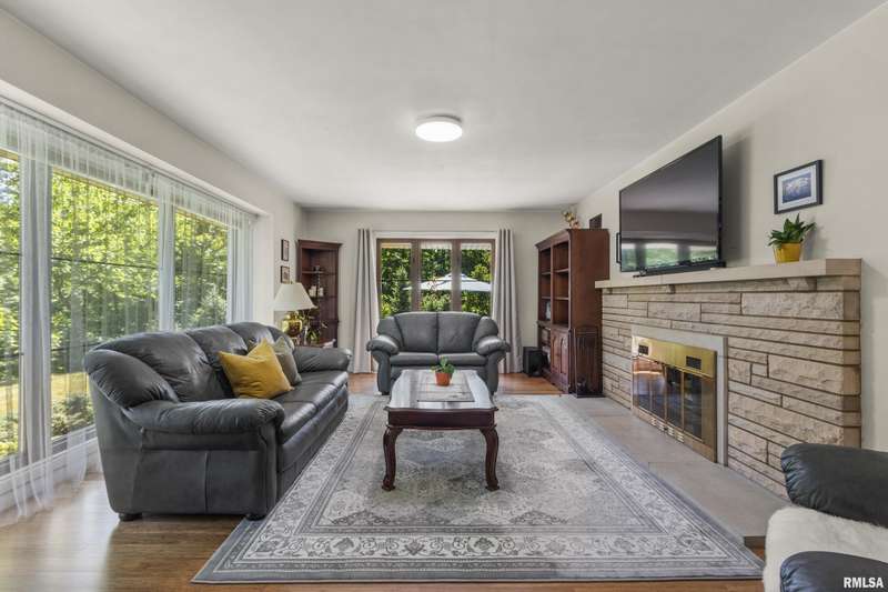 Welcome to this stunning property nestled in N. Peoria, minutes from shopping, restaurants, and schools. This exquisite home is set on over 2 acres, offering a country feel and breathtaking seasonal views of the river and nature. With three spacious bedrooms and two pristine bathrooms, this residence promises comfort and tranquility. This expansive property is surrounded by mature trees, providing a sense of privacy and connection to nature. The beautifully landscaped acreage is a peaceful oasis; a wonderful spot for outdoor activities and enjoying warmer months. The highlight of this beautiful home is the renovated kitchen, featuring granite countertops and a grand island perfect for culinary enthusiasts or gatherings. The modern design blends style and functionality, ensuring a superb cooking experience. Just in the next room, the inviting living room is a cozy retreat, boasting of a stone fireplace and large windows. The design offers a warm and welcoming atmosphere, ideal for relaxing or entertaining. All three bedrooms offer great natural lighting and extra space. Downstairs, the basement is partially finished with a great room, plus additional rooms and storage. This rare gem combines the beauty of nature with the conveniences of modern living. Come check out this dream property! Parcels split in the 2025 tax year and taxes will be reevaluated. Districts #323 and #150 confirm attendance to their school, but buyer to also verify.