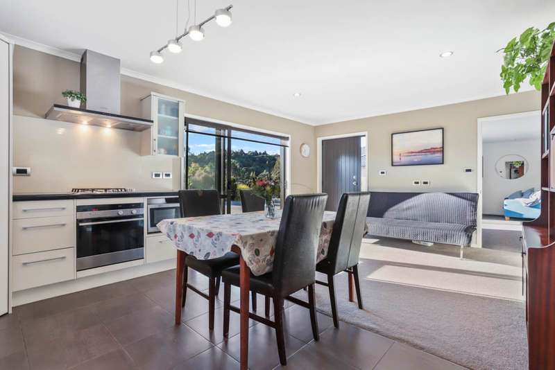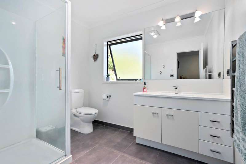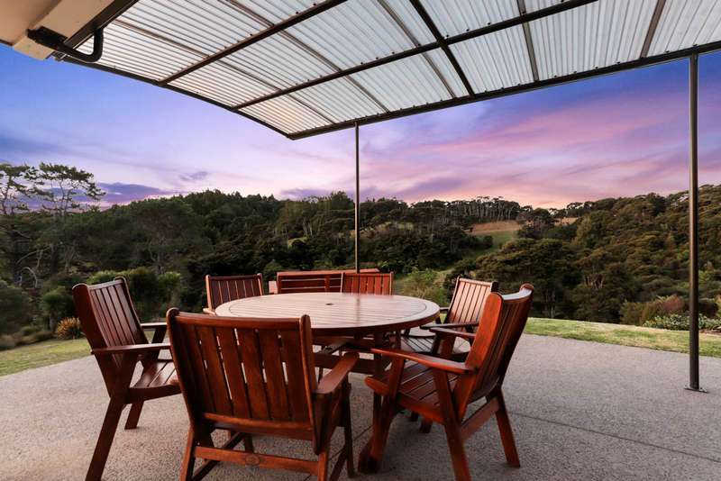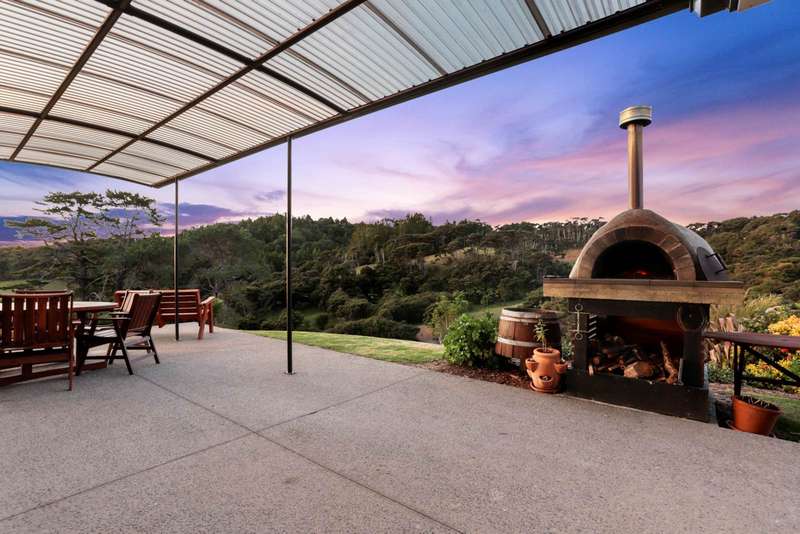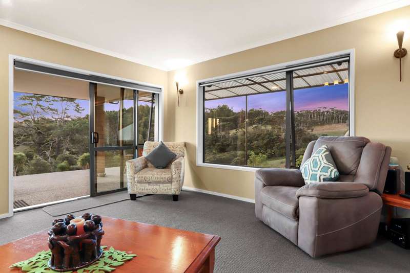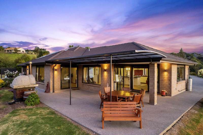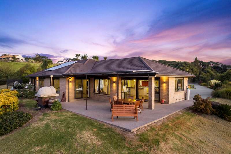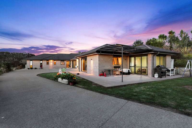Seeking extended family living in an idyllic natural setting that chimes to the daily birdsong of Tuis & native birdlife? This contemporary 354m2 residence provides the benefit of two separate homes, offering independence & space. The main dwelling suitable for a large family is complimented with a second (attached) minor dwelling. Perfect as a home & rental also. Enjoy modern living conveniences & sustainable living off the land, growing organic fruit & vegetables with fresh eggs for breakfast & reduce your monthly power bills, thanks to solar power. Set on a serenely private one hectare – fully fenced, 2.5 acre wonderland, you’ll enjoy stunningly scenic panoramic views. The pad’s in place awaiting your spa pool & the outdoor pizza oven is ready for gourmet pizza! A hidden dog fence provides pet security peace of mind also. The seamless floorplan successfully merges single level living across the two homes. Primary residence: Four bedrooms including master bedroom suite, en-suite bathroom, walk in robe plus three double bedrooms & family bathroom. The open plan kitchen, living & dining room is an entertainer’s joy with plentiful space, showcased by panoramic views from all angles. An adjoining second living room is the perfect place for kicking back & relaxing in the evening. Access to the Archgola covered patio off the living is seamless for supreme outdoor living & alfresco dining. Secondary residence: One bedroom plus study: Includes master & study suitable as home office, open plan dining, kitchen & living with main bathroom. An Archgola covered patio accesses off the master for easy outdoor living. Located only 20 minutes from Silverdale and Westgate. Inspect today!