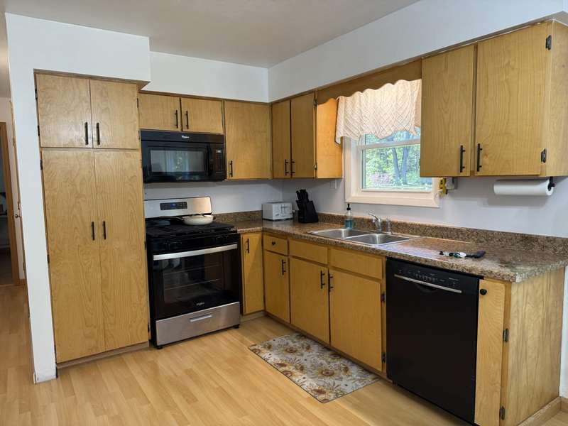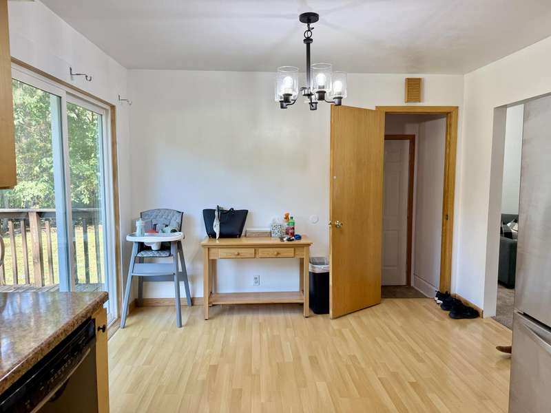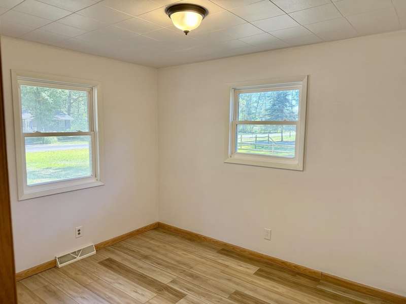 Move-in ready 3-bedroom ranch situated on a spacious and private lot. Spread out with this move in ready home with immediate possession on a quiet dead end street and large .82 acre lot. The main floor features a well-equipped kitchen with newer stainless steel appliances, and dining area with slider out to the deck overlooking the beautifully secluded backyard. Updated bathroom and flooring. The basement includes an egress window, offering the potential to add a fourth bedroom or create a finished recreational space. The oversized two-car garage is a handyman's dream—complete with a workbench and built-in cabinets. Separate shed provides convenient storage for lawn equipment. The home has been updated with newer windows throughout, doors, and sliding glass door, helping to improve energy efficiency and reduce heating and cooling costs. Buyer to verify all listing information.
