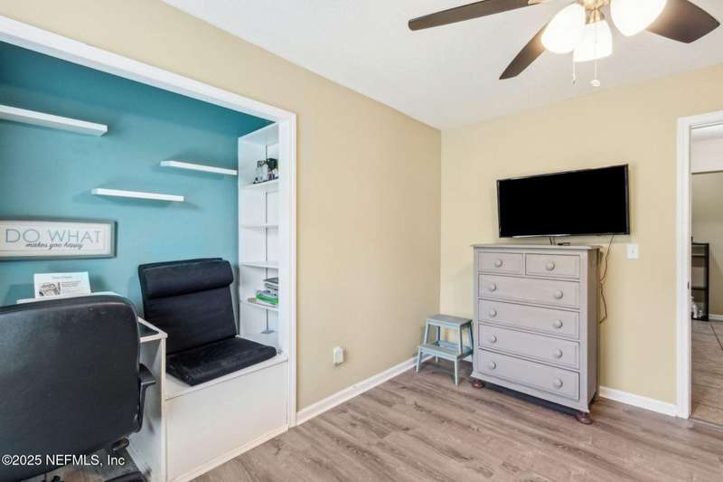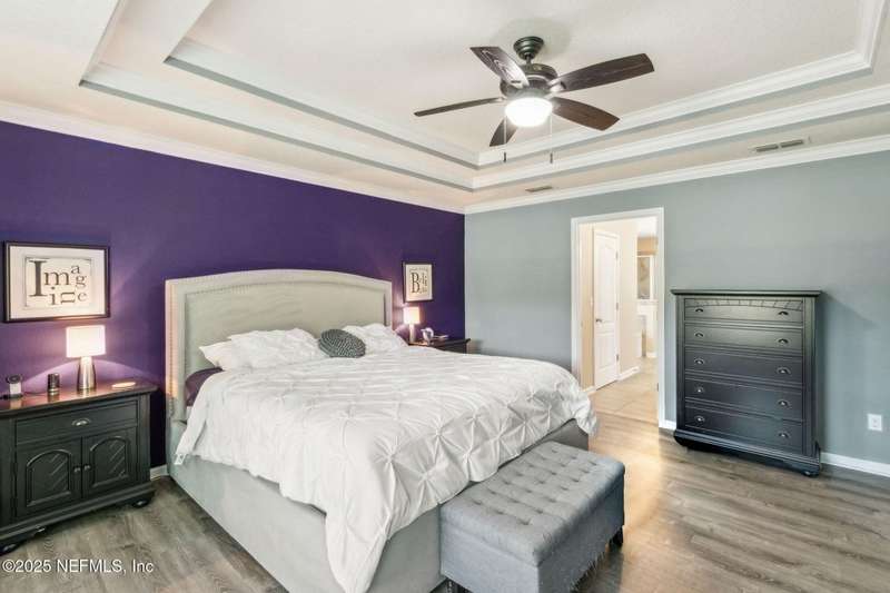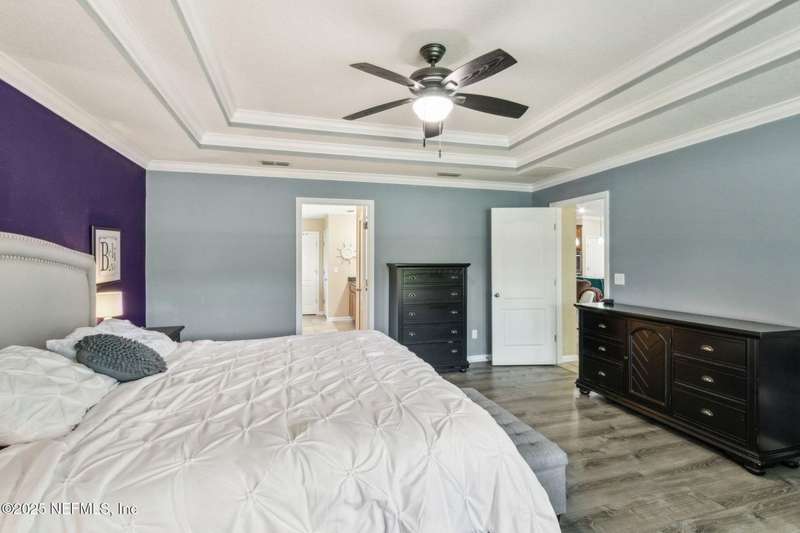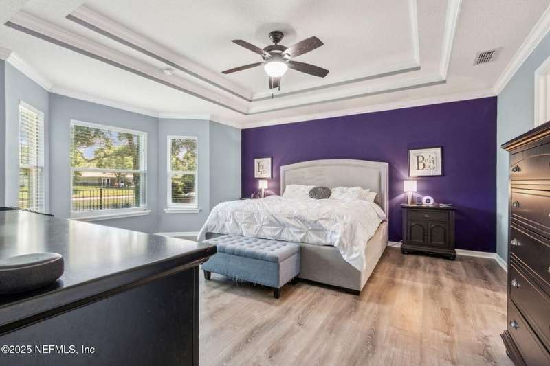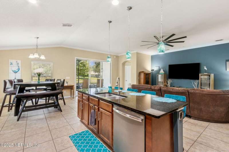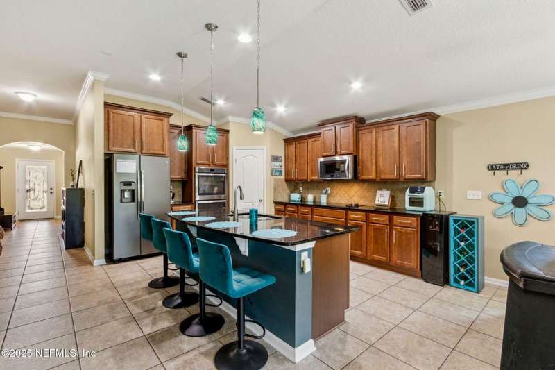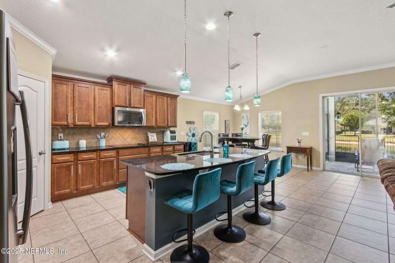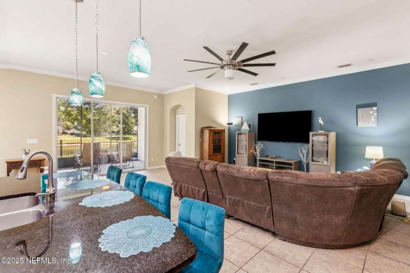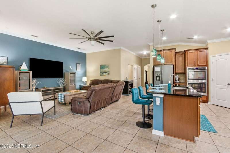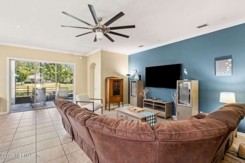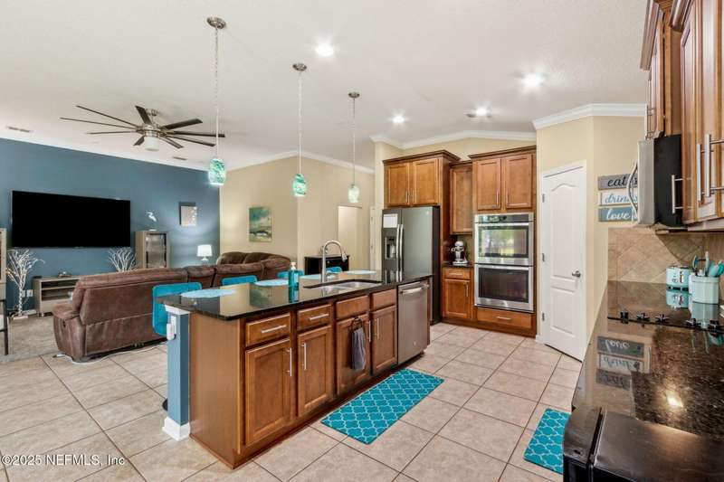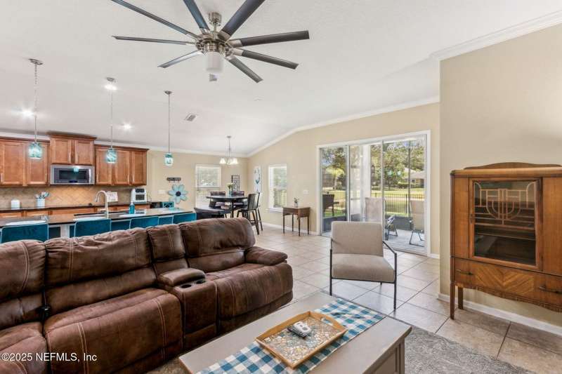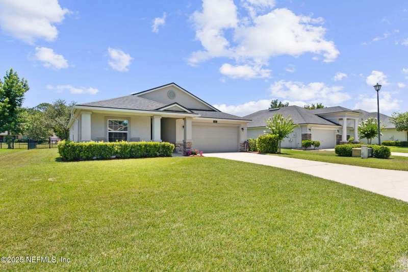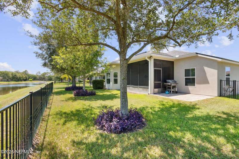 Enjoy resort-style living in this beautiful 4-bedroom, 2.5-bath family home located in the highly desirable MuraBella community. Just minutes from World Golf Village and the iconic King & Bear golf course-co-designed by Jack Nicklaus and Arnold Palmer - this home offers the perfect blend of comfort, convenience, and exceptional lifestyle amenities in one of Florida's top-rated school districts: St. Johns County. Offering 2,042 square feet of living space, this home features attractive stucco and ledgestone accents that create impressive curb appeal. Inside, the open-concept layout seamlessly connects the kitchen, dining, and family room-ideal for entertaining and everyday living. A popular split-bedroom floor plan provides privacy and flexibility for families and guests alike. The gourmet kitchen is a true centerpiece, complete with a large island with double sink, flat-panel maple cabinetry, ceramic tile backsplash, pantry closet, pendant and recessed lighting, and a double oven - both functional and stylish for cooking or hosting. The spacious owner's suite serves as a private retreat, highlighted by a bay window sitting area and a double-step tray ceiling. The en-suite bath includes a garden tub, separate tiled shower with seating, dual vanities, private water closet, linen storage, and a large walk-in closet. Bedrooms two and three are generously sized and share a full bathroom. The fourth bedroom, located near the half bath, is perfect for guests or can serve as a home office. Additional features include a full water softener loop and a finished two-car garage. Outdoor living is a highlight with a screened-in Lanai and exterior grilling patio, all overlooking a fully fenced backyard and peaceful lake. It's an ideal setting for morning coffee, weekend barbecues, or relaxing sunsets. A programmable color-changing exterior lighting system adds a festive touch for holidays and special occasions.MuraBella residents enjoy an incredible array of resort-style amenities: Clubhouse and state-of-the-art fitness center, Resort-style swimming pool with waterslide tower, Lap pool and splash park, Tennis, volleyball, and multi-purpose sports courts, Soccer and softball fields, Children's playground, amphitheater, and party pavilion. With its unbeatable location, spacious layout, and access to premier community amenities, 417 Palazzo Circle offers a lifestyle you'll love coming home to. Schedule your private tour today!