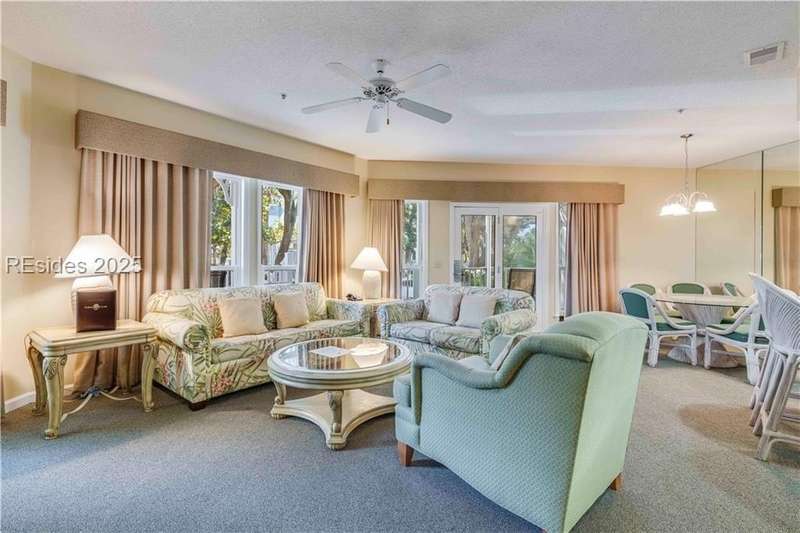 Roomy with an open floor plan 2 BR / 2 BA. Includes golf for 4 players daily for cart fee and free tennis or pickleball. Great location close to pool; walk off back deck to grilling, picnic, and pool. Open deck and screened deck. Close to beach and Westin Resort and Spa.