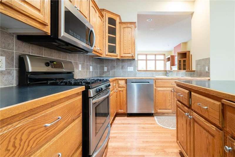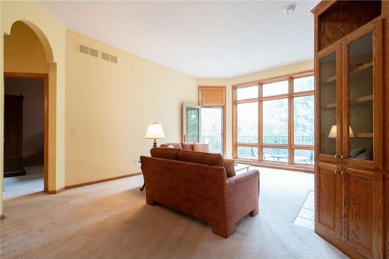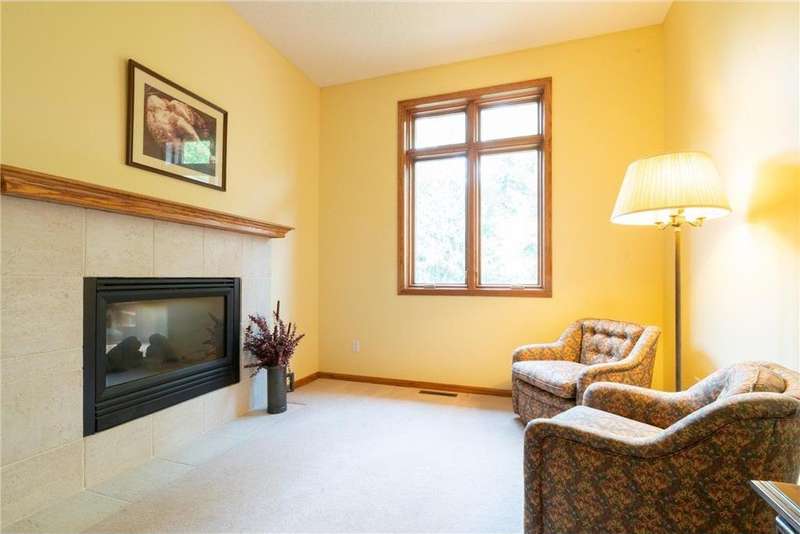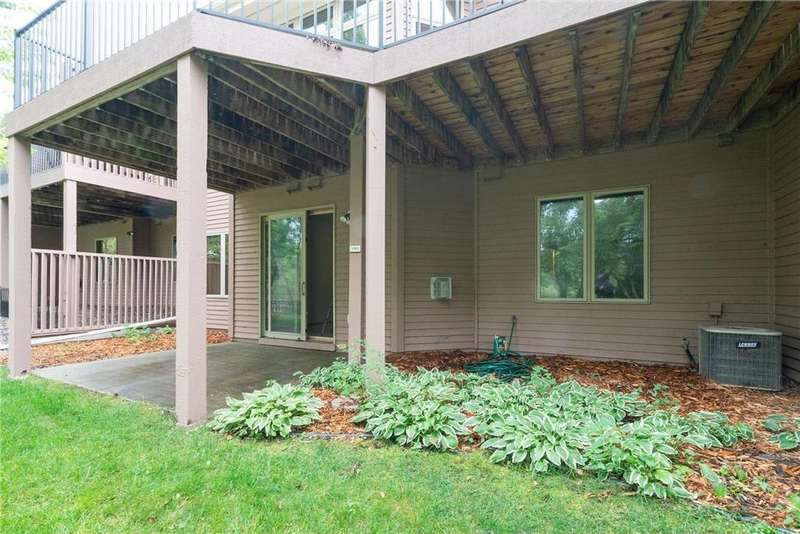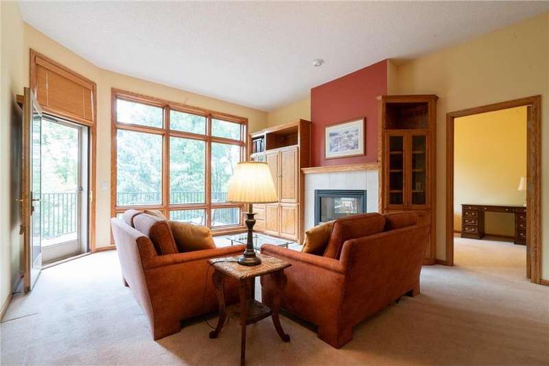 Beautiful Wensmann built main level living townhome with high ceilings and wall of windows. Spectacular setting with floor to ceiling windows highlighting pond views, walking trails and city park nearby. Tons of natural light in this open concept living space. Efficient and affordable luxury in a community of larger homes. Kitchen is chef's kiss with more cabinet space, storage and production area then you can ever imagine. Living room is the focal point as you enter and notice the comfortable open space, easy access to the deck and the convenient gas fireplace. Main floor primary with private full bath and personal access to maintenance free deck. Convenient office space on the main with peaceful views of wildlife and nature. Lower level boosts gas fireplace, 2 additional bedrooms, walkout to patio and so much storage you will be amazed. Turn key opportunity with only one previous owner...this one shines!