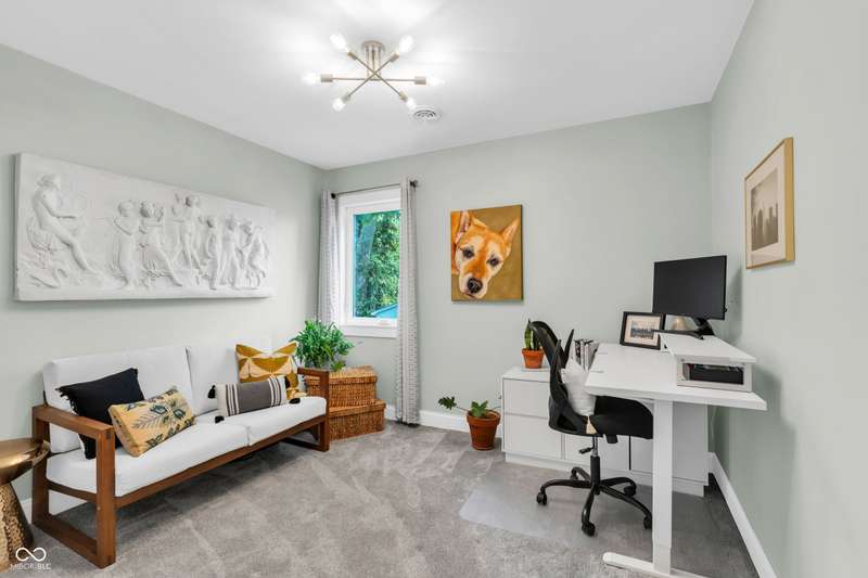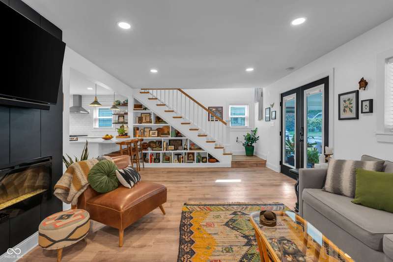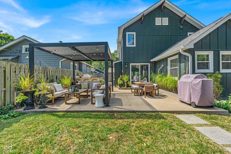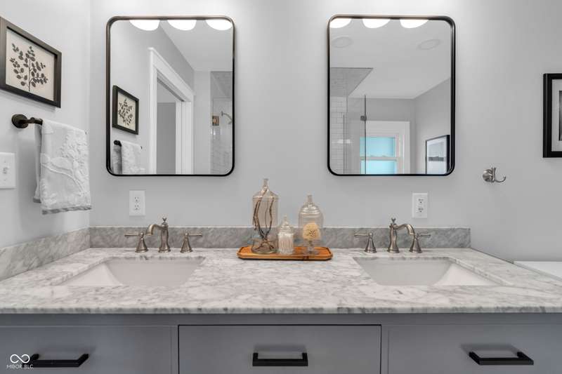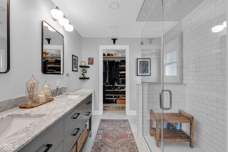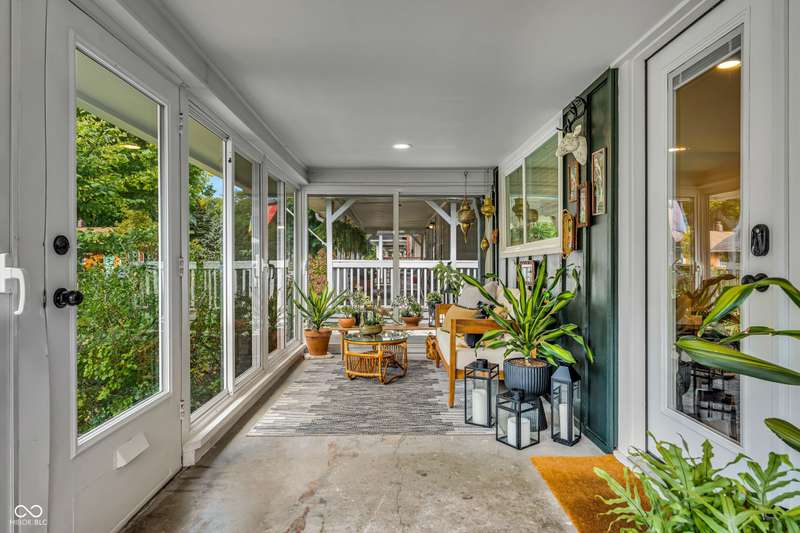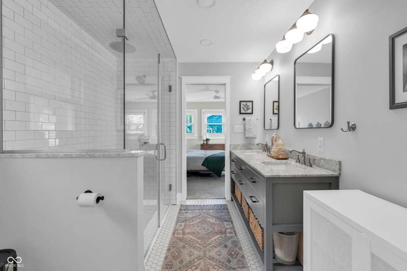 Modern Farmhouse in the heart of Meridian Kessler with Main Level Primary suite, backyard oasis, and direct access to the Monon Trail! A screened and glass-enclosed front porch doubles as a greenhouse-inspired retreat, and leads to double French doors - perfect for indoor/outdoor transitional living. Inside, an airy, open floor plan unfolds around a Living Room anchored by a raised contemporary fireplace and custom built-in bookshelves. The Chef's Kitchen is the interior showpiece with quartz counters, timeless tile backsplash, gas range with double ovens, stainless hood, concealed dishwasher, and abundant storage between the soft close cabinets and step-in Pantry. Share meals and moments at the Center Island, Breakfast Bar, or Dining Nook. The main-level Primary Bedroom peers over the lush backyard and flows to a spa-worthy ensuite: floor-to-ceiling tiled walk-in shower with dual shower heads, frameless glass door, comfort height vanity with double sinks, and a fully appointed walk-in closet. A Powder Room in deep, dramatic tones and thoughtfully designed Laundry Room complete the first floor. Upstairs, 3 rooms offer flexibility, including a vaulted, light-filled space with a wall of windows and oversized walk-in closet - perfect as a Bunk Bedroom, Studio, or Game Room. Detached Finished space adjacent to the 2 Car Tandem Garage is conditioned and perfect for an Office, Speak Easy or creative haven. Continue outside to your private oasis: a fully fenced rear Yard with a Pergola shaded Patio and gourmet "Marine Grade" Outdoor Kitchen, featuring a Grill, Rotisserie, Infrared Burner, Bar Fridge, built-in Surround Sound, and atmospheric Lighting. Dip into the in-ground heated wading pool/spa, or wander out the Fence Gate direct to the Monon Trail! Easy walk/ride to Prufrock, Half Liter, Pots & Pans Pie Co., Root & Bone. New in 2019: Roof, 2 HVAC systems, Tankless Water Heater. This home is equal parts modern, moody, and magnetic - and waiting for its next chapter!