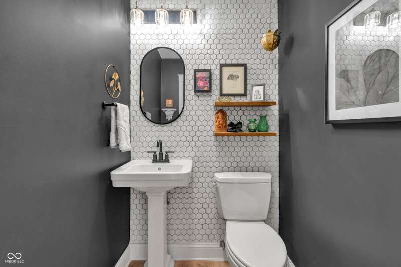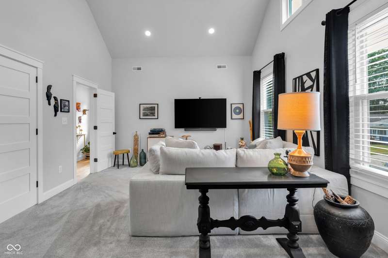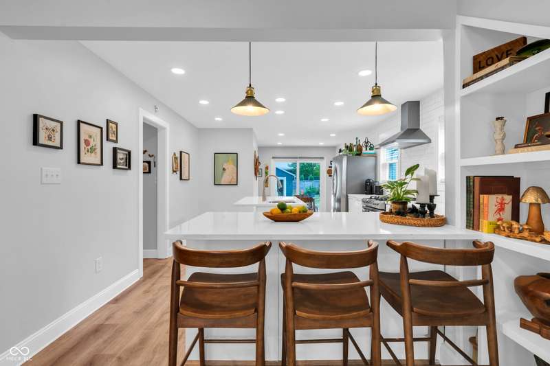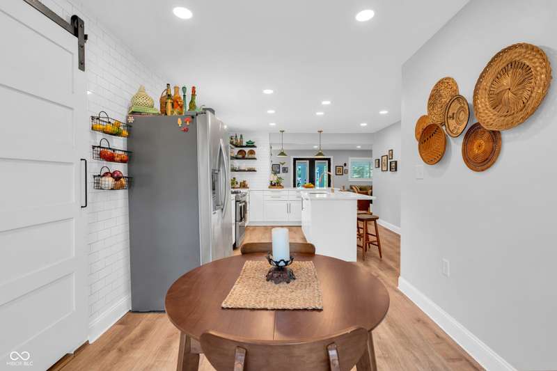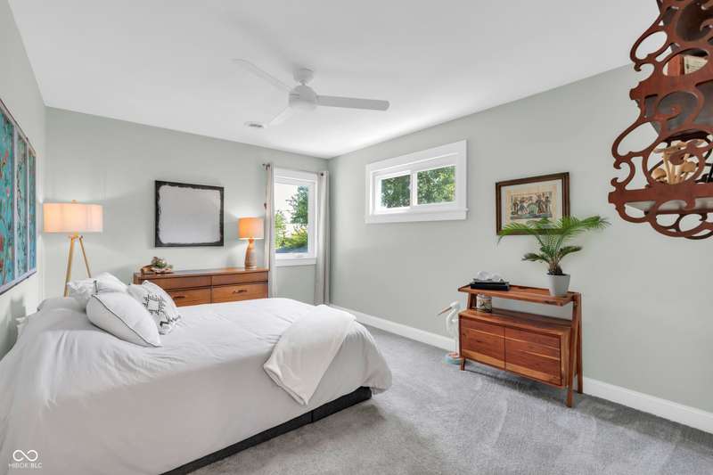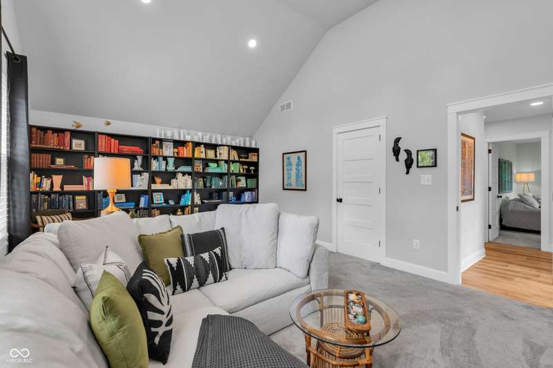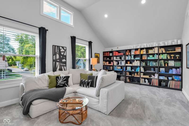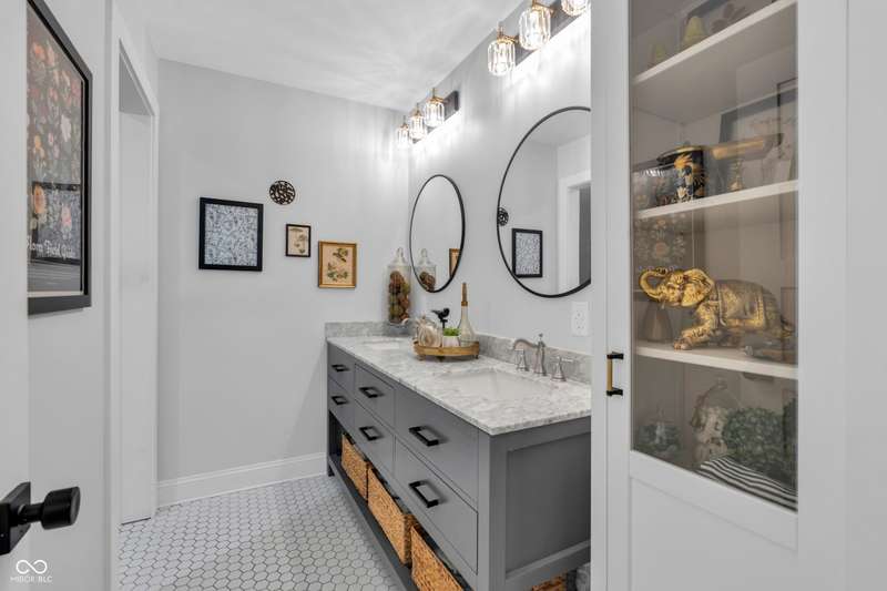 Modern Farmhouse in the heart of Meridian Kessler with Main Level Primary suite, backyard oasis, and direct access to the Monon Trail! A screened and glass-enclosed front porch doubles as a greenhouse-inspired retreat, and leads to double French doors - perfect for indoor/outdoor transitional living. Inside, an airy, open floor plan unfolds around a Living Room anchored by a raised contemporary fireplace and custom built-in bookshelves. The Chef's Kitchen is the interior showpiece with quartz counters, timeless tile backsplash, gas range with double ovens, stainless hood, concealed dishwasher, and abundant storage between the soft close cabinets and step-in Pantry. Share meals and moments at the Center Island, Breakfast Bar, or Dining Nook. The main-level Primary Bedroom peers over the lush backyard and flows to a spa-worthy ensuite: floor-to-ceiling tiled walk-in shower with dual shower heads, frameless glass door, comfort height vanity with double sinks, and a fully appointed walk-in closet. A Powder Room in deep, dramatic tones and thoughtfully designed Laundry Room complete the first floor. Upstairs, 3 rooms offer flexibility, including a vaulted, light-filled space with a wall of windows and oversized walk-in closet - perfect as a Bunk Bedroom, Studio, or Game Room. Detached Finished space adjacent to the 2 Car Tandem Garage is conditioned and perfect for an Office, Speak Easy or creative haven. Continue outside to your private oasis: a fully fenced rear Yard with a Pergola shaded Patio and gourmet "Marine Grade" Outdoor Kitchen, featuring a Grill, Rotisserie, Infrared Burner, Bar Fridge, built-in Surround Sound, and atmospheric Lighting. Dip into the in-ground heated wading pool/spa, or wander out the Fence Gate direct to the Monon Trail! Easy walk/ride to Prufrock, Half Liter, Pots & Pans Pie Co., Root & Bone. New in 2019: Roof, 2 HVAC systems, Tankless Water Heater. This home is equal parts modern, moody, and magnetic - and waiting for its next chapter!