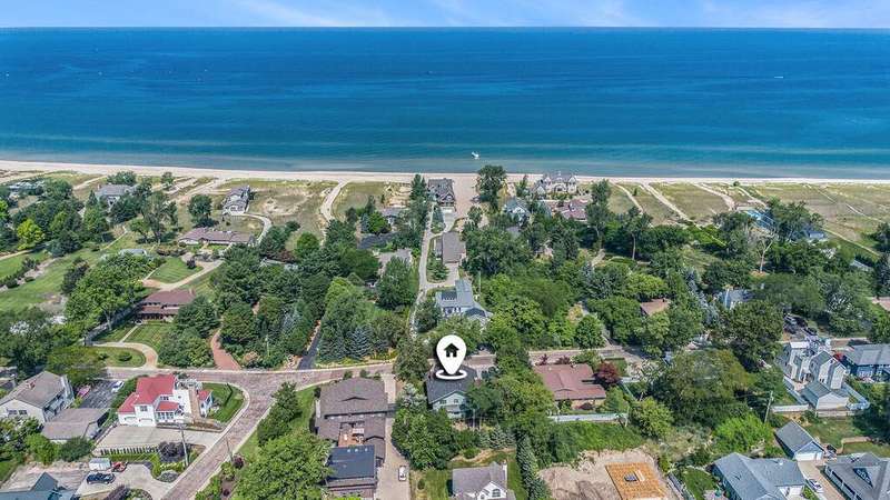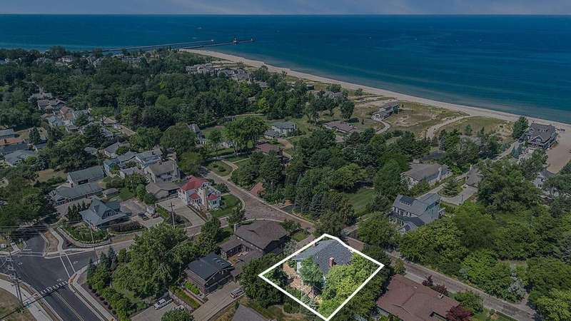 Historic 1910 resort re-imagined for modern multi-generational living. Features four separate units, each complete with bedroom, living space, private bath & kitchen. This thoughtful arrangement ensures that every generation from grandparents to grandchildren can enjoy their own personal sanctuary while still being just steps away from loved ones. The ''cohousing'' movement provides a lifestyle prioritizing comfortable independence, connections, and community. Located on a charming brick road slowing traffic and connecting you to two expansive sandy public Lake Michigan beaches. With its solid, enduring construction, this home gracefully retains its original resort charm. A true timeless gem.