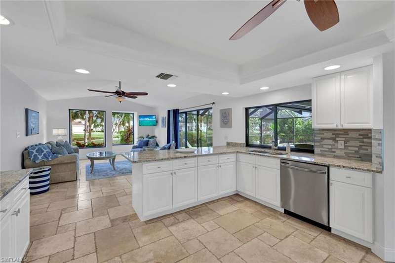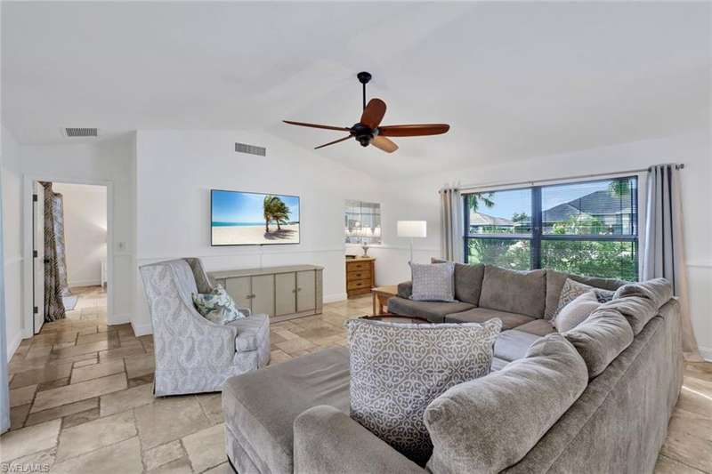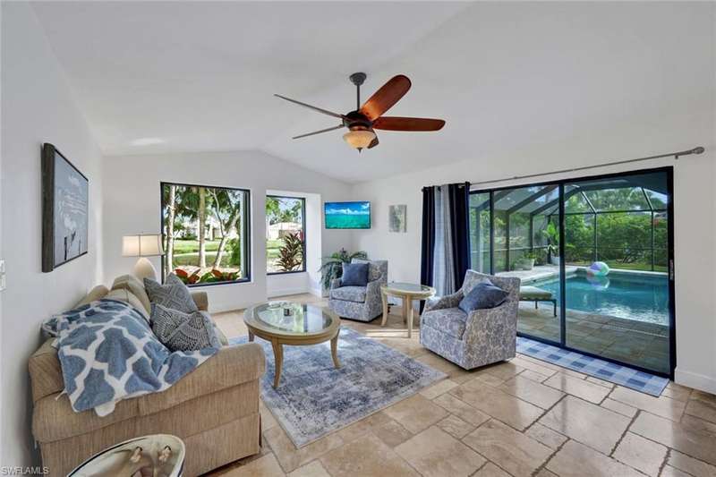 This inviting 3 bedrooms/2-bathroom pool home is an excellent couple's or family vacation getaway. A tropical Oasis that offers a fabulous wide open floor plan with a huge outdoor living space for entertaining family & friends and has everything you need for a stress-free stay including a fully equipped and updated kitchen with granite counters, breakfast bar and stainless-steel appliances, flat screen tv's, an outdoor dining area with a gas grill, a heated pool, inviting decor that will make you feel at home. Centrally located just 3 miles from Bonita Springs white sandy beaches and is minutes away to fine dining, shopping and entertainment at the Coconut Point Mall or Mercato!