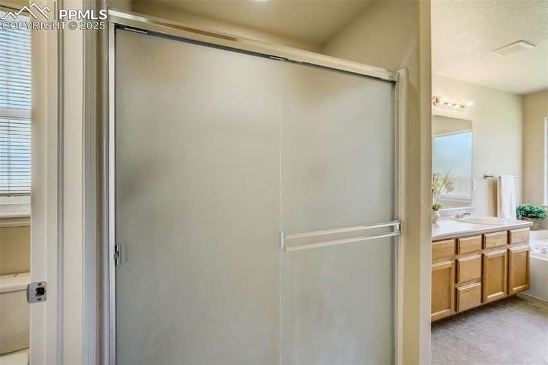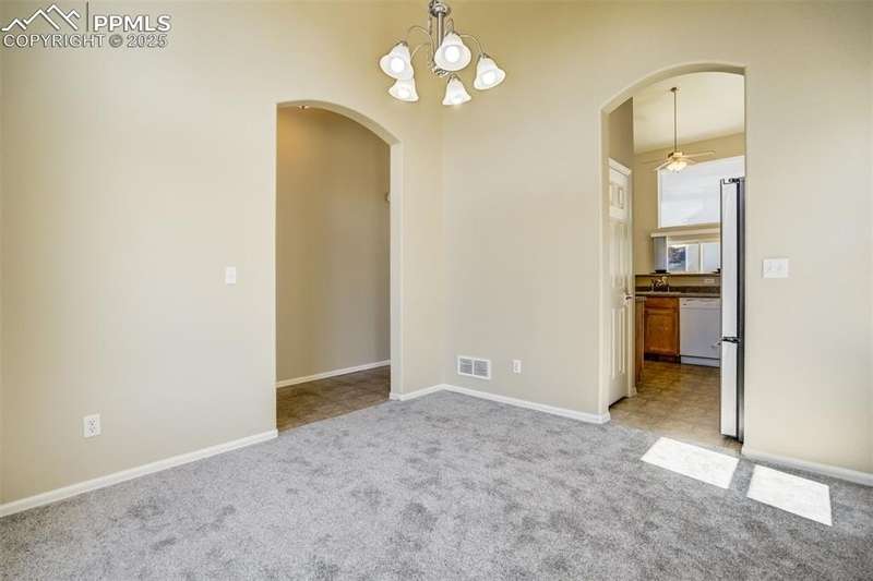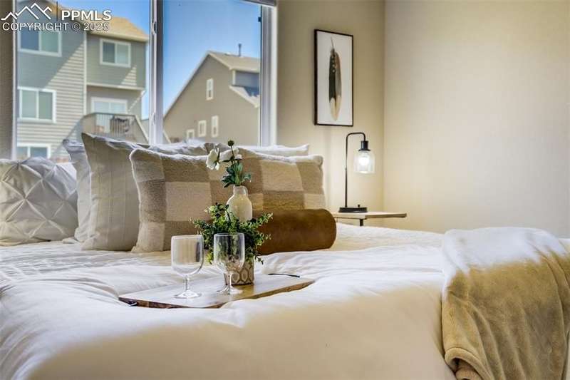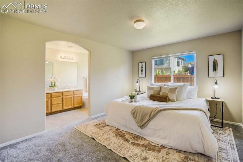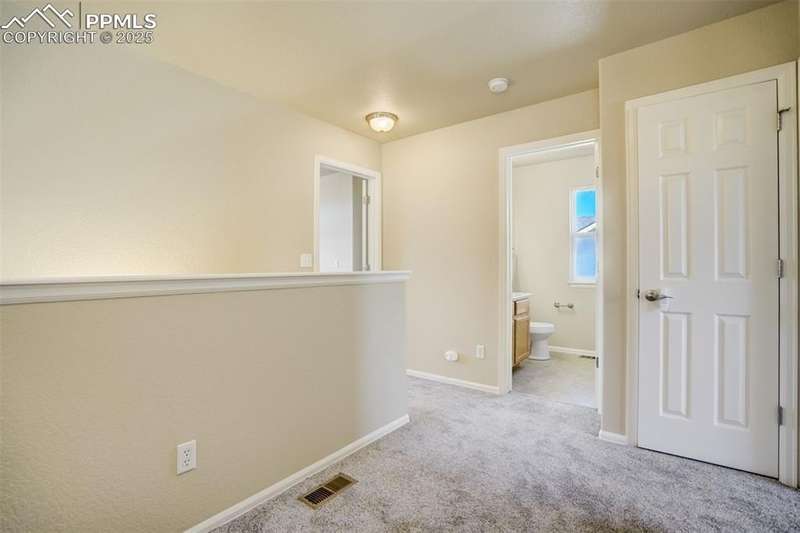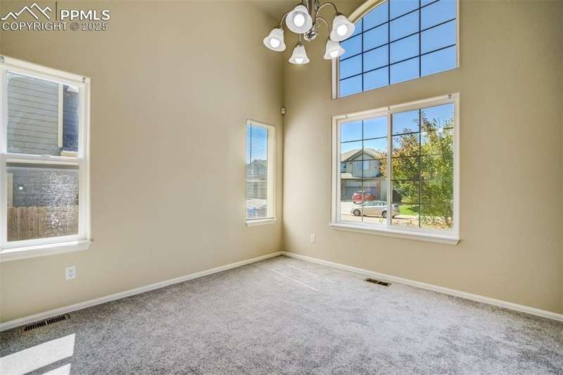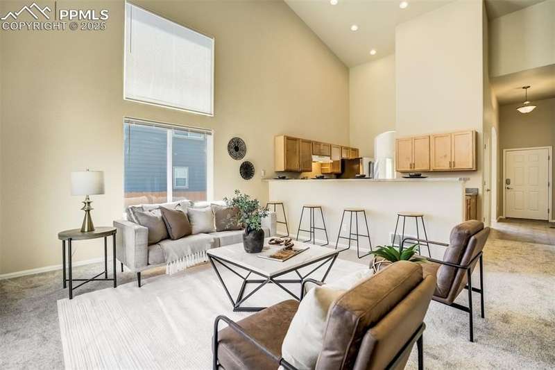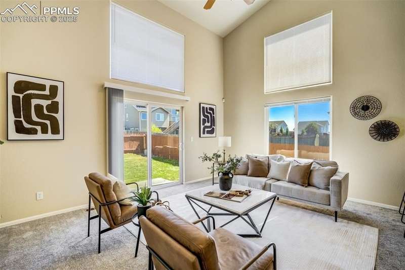 This one has high ceilings and will definitely meet your high expectations! Step through the impressive front door and into a home that wastes no time showing off. The two-story ceilings makes a grand entrance you won't forget. The main-level Primary Suite is a true retreat with space to spread out, while upstairs you’ll find two bedrooms and a loft ready to be transformed into a reading nook, homework hub, or secret hideout. All bedrooms have walk-in closet space. Love to cook? The open kitchen delivers plenty of counter space, a generous pantry, and a perfect flow to the dining and living areas—ideal for entertaining or midnight snacking. And yes, there’s an unfinished basement—a blank canvas waiting for your home theater, gym, or guest suite dreams. Outside, enjoy a backyard built for BBQs, four-legged friends, and Colorado sunsets. Best of all? This home is tucked into a prime Colorado Springs location, close to shopping, trails, and every military base in town. New carpet and new interior paint throughout.