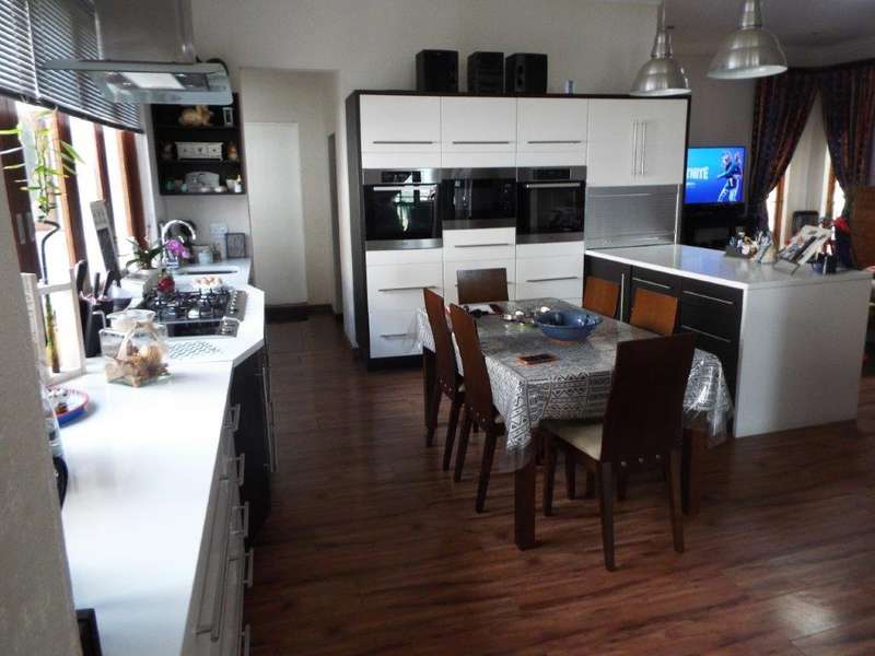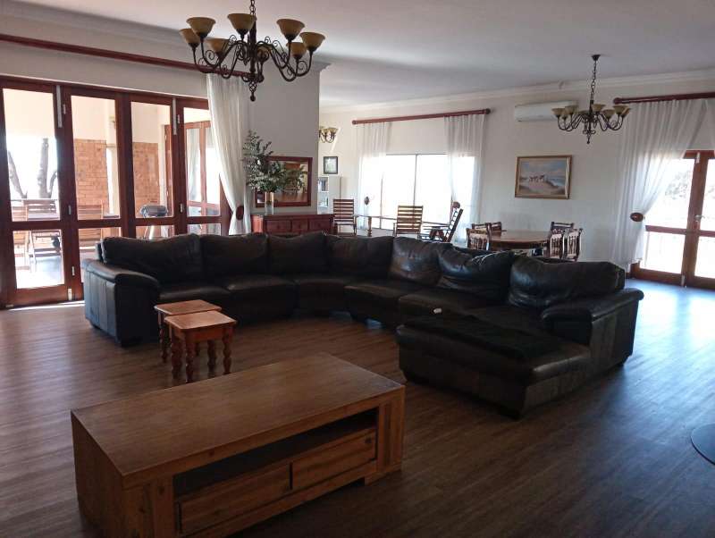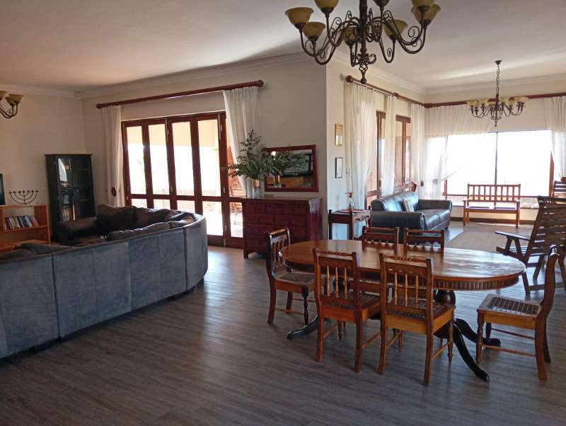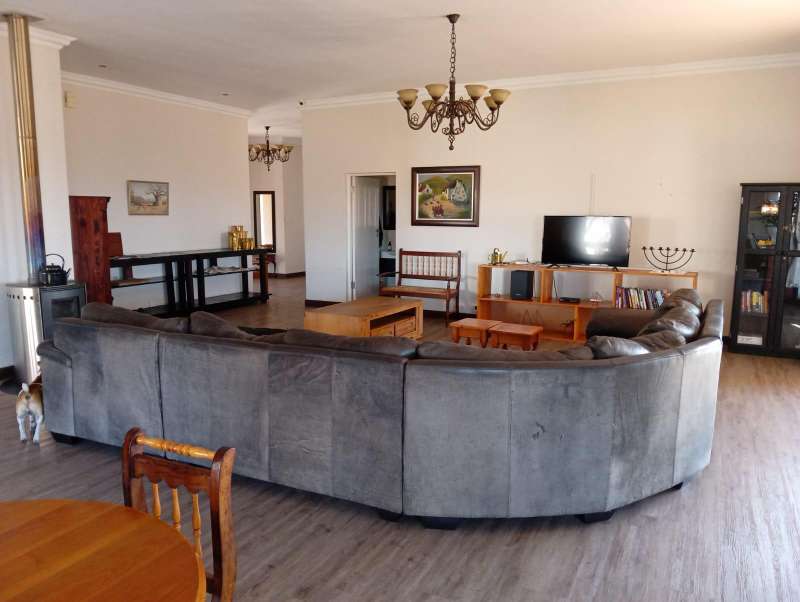 Sole Mandate! Country Living in Town ?Çô A Rare Find! This stunning and spacious family home combines the tranquility of country living with the convenience of town location. Designed for comfortable and modern living, this property offers everything a large or extended family could need. Main House Features: 4 well-sized bedrooms with built-in cupboards 4 bathrooms, including 2 luxurious en-suites Open-plan living and dining areas Modern kitchen with separate scullery, laundry, and walk-in pantry Mix of tiled and carpeted flooring Underfloor heating and air conditioning for year-round comfort Flatlet: Ideal for extended family or rental income, the flatlet includes: 2 bedrooms and 2 bathrooms Fully fitted kitchen Lounge and dining area Additional Features: 2 x Double garage plus covered parking for 6 vehicles Multiple store rooms Expansive deck with built-in braai and scenic views Sparkling swimming pool and beautifully established garden Utilities & Security: Borehole with pump and motor JoJo tanks with pumps Gas and electric stove Solar geysers Full security system with CCTV, beams, alarm, and electric fencing This one-of-a-kind property is the perfect blend of luxury, space, and practicality. Don?ÇÖt miss the opportunity to make it yours ?Çö contact us today to schedule a viewing!