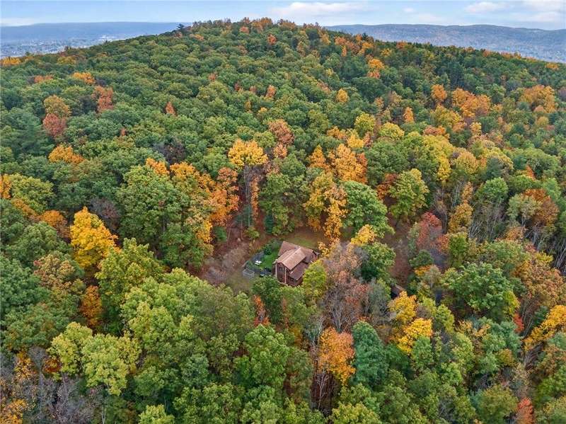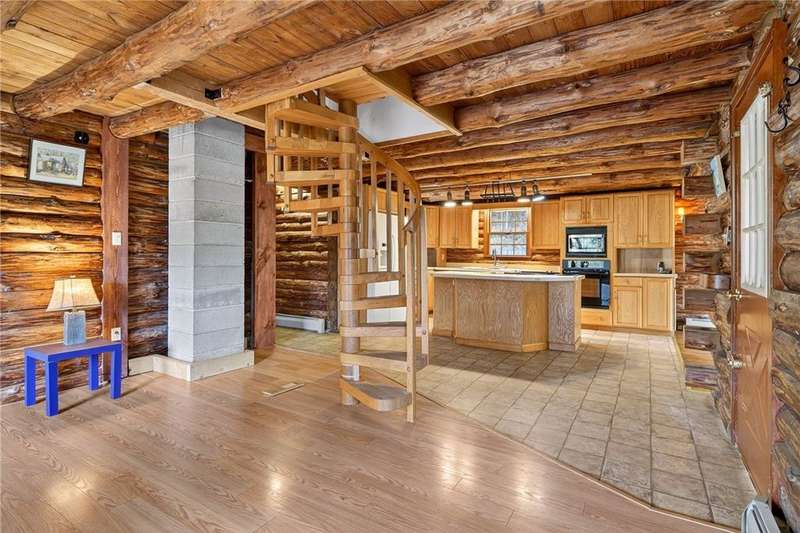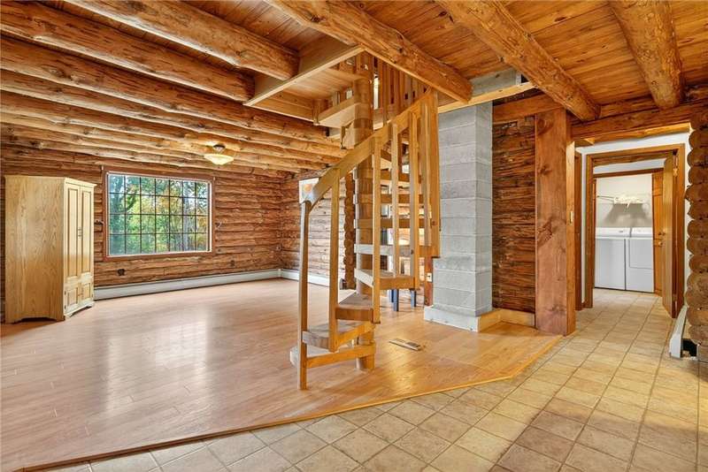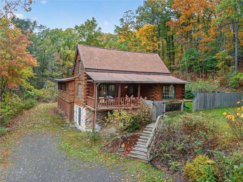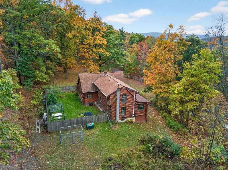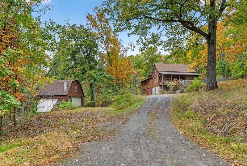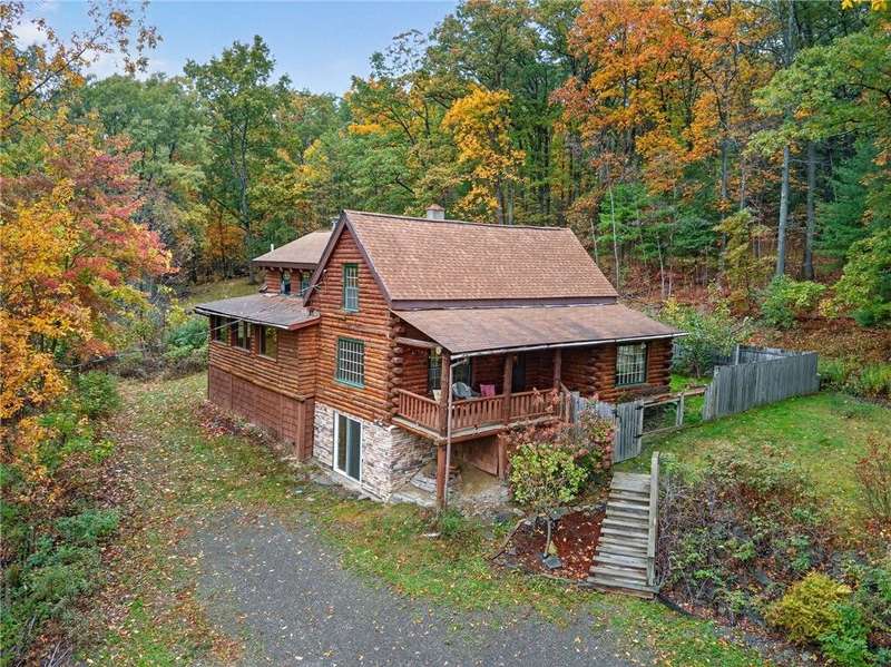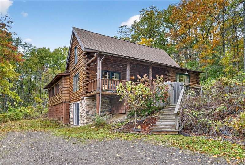 Welcome to 7 Radar Hill ? your own private oasis in Big Flats. Tucked up a quiet, government-maintained private road, this 1982 log-style home sits on 5 wooded acres, blending privacy, practicality, and convenience. The open-concept kitchen flows into the dining and living areas, while the family room features a cozy woodstove. A screened-in porch adds another peaceful space to relax. The main level also includes a full bath and laundry. Up the spiral staircase are two guest bedrooms and a spacious primary suite with ensuite access to the shared full bath, complete with a large soaker tub. The walkout lower level offers a second kitchen, full bath, rec room with its own woodstove, and wet bar?perfect for guests or entertaining. The property includes a three-story detached garage: the lower level (with workshop) accesses the first driveway, the middle level (two-car garage) accesses the second driveway near the house, and the third level provides generous storage. Plenty of parking, a large yard, and a fully fenced area perfect for canine companions complete the package. Recent updates include a hot water on-demand heating system (2019), roof (2018), and well pump (2024). All this serenity?yet just minutes from schools, shopping, museums, the airport, and Arnot Hospital. A rare combination of seclusion, space, and convenience.