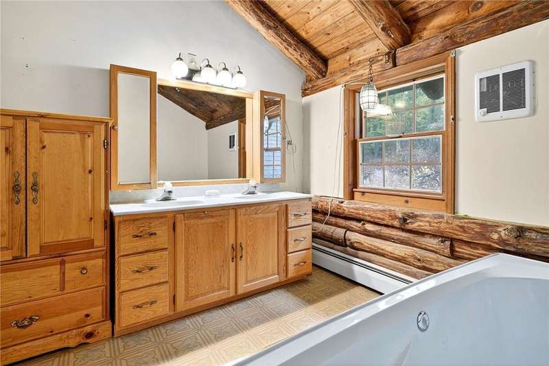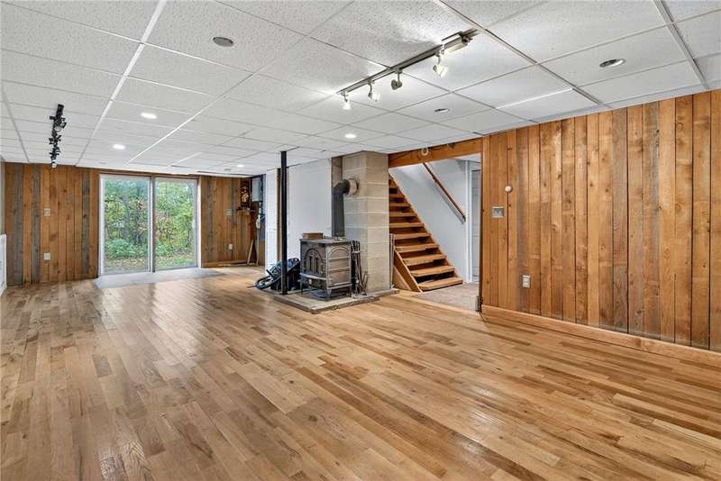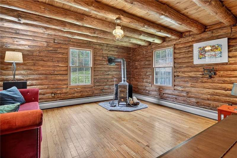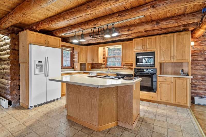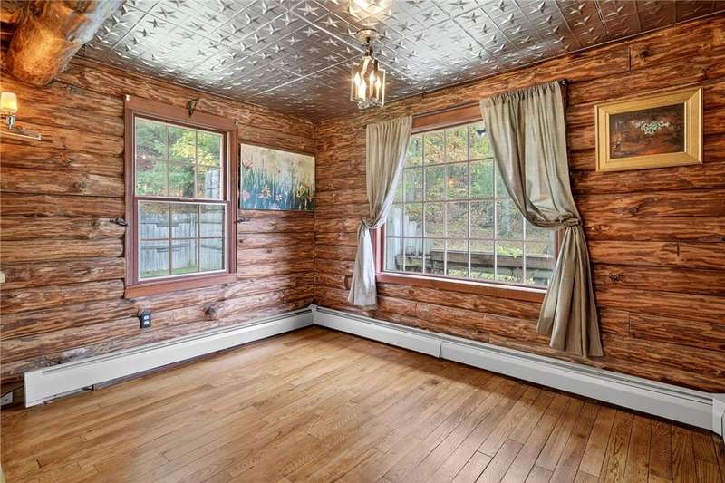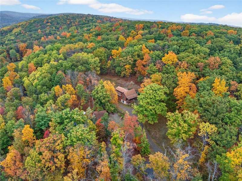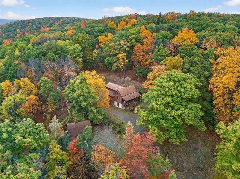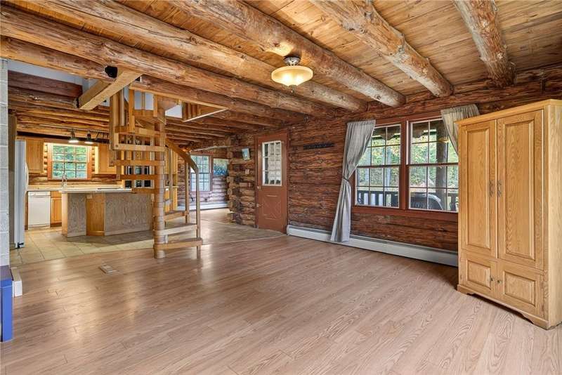 Welcome to 7 Radar Hill ? your own private oasis in Big Flats. Tucked up a quiet, government-maintained private road, this 1982 log-style home sits on 5 wooded acres, blending privacy, practicality, and convenience. The open-concept kitchen flows into the dining and living areas, while the family room features a cozy woodstove. A screened-in porch adds another peaceful space to relax. The main level also includes a full bath and laundry. Up the spiral staircase are two guest bedrooms and a spacious primary suite with ensuite access to the shared full bath, complete with a large soaker tub. The walkout lower level offers a second kitchen, full bath, rec room with its own woodstove, and wet bar?perfect for guests or entertaining. The property includes a three-story detached garage: the lower level (with workshop) accesses the first driveway, the middle level (two-car garage) accesses the second driveway near the house, and the third level provides generous storage. Plenty of parking, a large yard, and a fully fenced area perfect for canine companions complete the package. Recent updates include a hot water on-demand heating system (2019), roof (2018), and well pump (2024). All this serenity?yet just minutes from schools, shopping, museums, the airport, and Arnot Hospital. A rare combination of seclusion, space, and convenience.