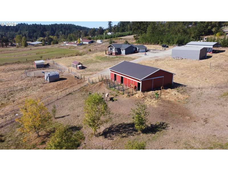 Saddle up and get ready to fall in love with this 5-acre horse property where country living meets comfort and convenience! Just minutes from town, the single-level home welcomes you with an open great room concept, soaring vaulted ceilings, and a kitchen featuring quartz countertops and stainless steel appliances. Enjoy the south-facing front porch with AMAZING sunrises & sunsets. Relax in the evenings under the back covered patio with light & fan—perfect for year-round tranquility. For the horses, everything is ready to go: multiple pastures with shelters, a 36x48 barn with hay loft plumbed for water and electricity, 7 stalls (5 inside, 2 in shed row), a 12x24 insulated tack room and a round pen. French drains throughout the property keep things dry by channeling water to a seasonal creek, while the fully fenced perimeter includes an invisible dog fence to keep pups safe too. Practical perks abound—RV hookup with 50-amp breaker, septic, water and parking; multiple carports; a storage shed; and a large chicken coop and run. To top it off, you’ll enjoy over 60 wild apple trees with 3 varieties for a sweet fall harvest, for you & your horses! Location is unbeatable: ride your horse directly to Battle Ground Lake trails, or head to the next door arena that allows haul-ins. Whether you’re entertaining on the porch, tending your animals, or hitting the trails, this property blends town convenience with true country freedom.