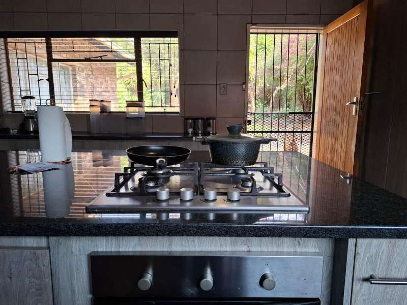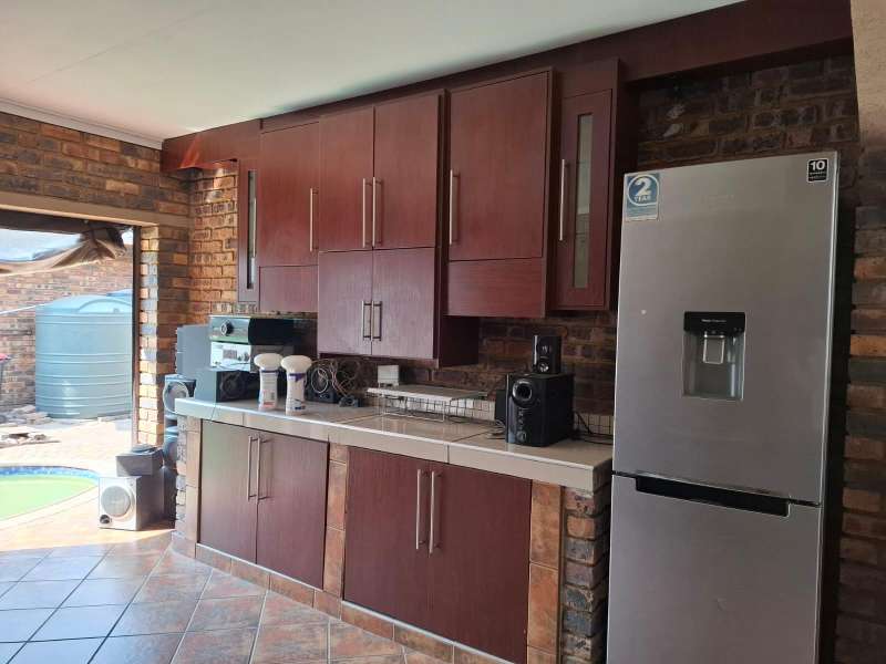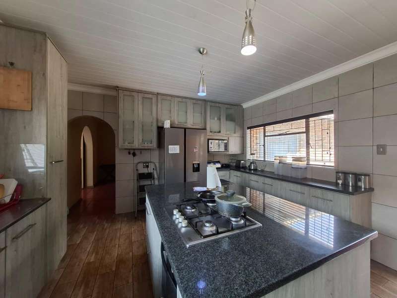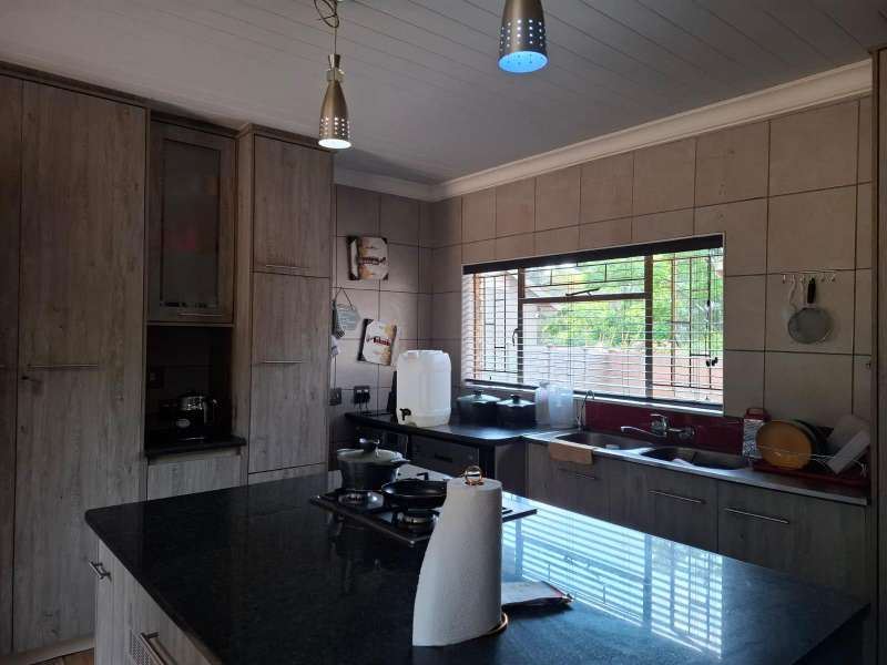 GRAND 4-BEDROOM FAMILY HOME | HIGHVELD PARK| 1386m?? | ENTERTAINER?ÇÖS DELIGHT! Welcome to this thoughtfully designed 4-bedroom residence, perfectly positioned in the sought-after Highveld Park area. Set on an expansive 1386m?? stand, this property combines practicality with a touch of modern elegance, offering the ideal family lifestyle. First Impressions That Last: Step through the automated gate into a picture-perfect setting. A beautifully manicured garden greets you, with double carports and a double garage ensuring ample parking. A charming garden feature leads the way to the front door, tucked securely behind a stylish security gate. Spacious Living at Its Finest: Inside, you?ÇÖre welcomed by gorgeous terracotta tiled living areas, including a formal lounge, dining room, and family room. Brand-new white ceilings and fresh neutral walls enhance the airy feel, while elegant sliding doors offer seamless transitions between spaces. A striking retro accent wall behind the TV adds a contemporary flair. A Kitchen to Fall in Love With: The heart of the home boasts a modern grey cupboard-fitted kitchen with granite countertops, a central island with gas stove & electric oven, chic lighting, and wood-look floor tiles. It?ÇÖs a dream space for home chefs and entertainers alike. Versatile & Practical Spaces: From the dining room, wooden sliding doors reveal a large bedroom/home office, complete with a full wall of built-in cupboards ?Çô perfect for remote working or guest accommodation. The hallway offers additional storage with two linen cupboards, ensuring practicality meets design. Bedrooms & Bathrooms Designed for Comfort: ?Çó 3 spacious bedrooms filled with natural light, featuring laminated flooring. ?Çó 2 bedrooms share a designer bathroom with modern tiling and a luxurious freestanding bath. ?Çó The main suite is a true retreat, complete with a ceiling fan, walk-through closets, and a stunning en-suite bathroom featuring his-and-hers basins and a shower-over-bath. Entertainment & Outdoor Living: Adjacent to the home is a spacious entertainment room with a built-in braai, opening to both the lush garden with mature trees on one side and a sparkling swimming pool on the other ?Çô the ultimate setting for hosting family and friends. Added Value Features: ?Çó 2x JoJo tanks (2500L & 900L) ?Çó Alarm system & outside beams ?Çó Additional double carport (ideal for caravan/boat) ?Çó Domestic toilet This exceptional home offers modern design, unbeatable functionality, and a prime location ?Çô truly a property not to be missed!