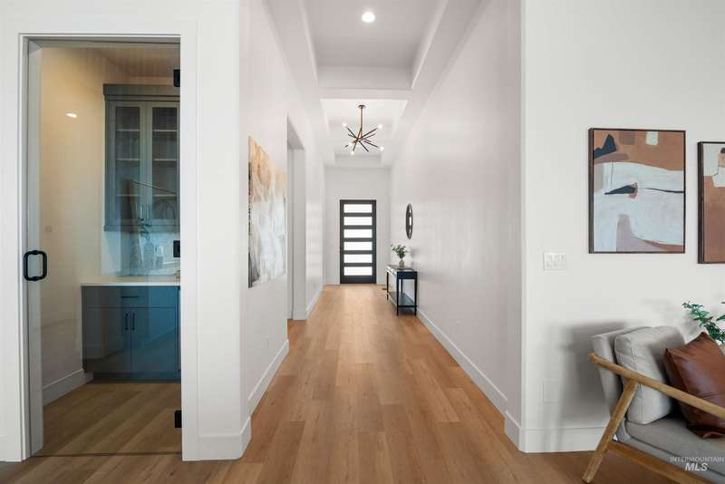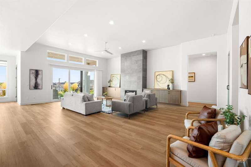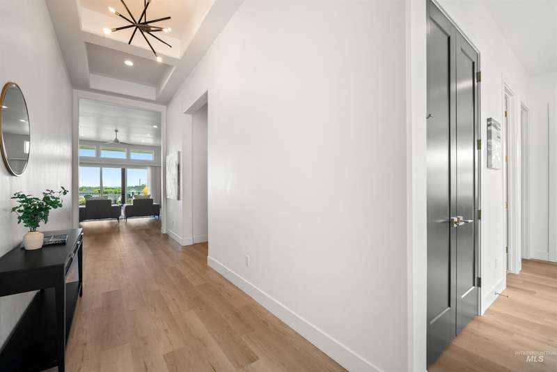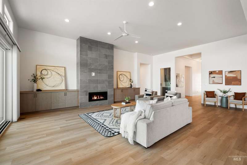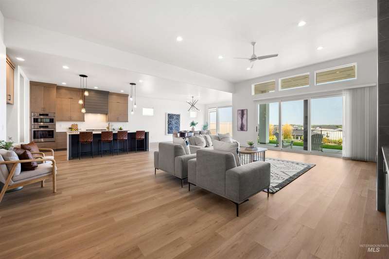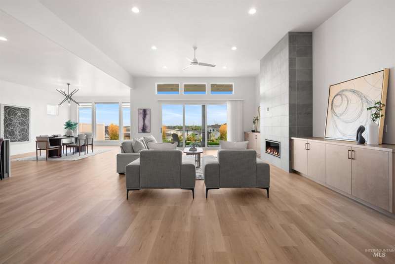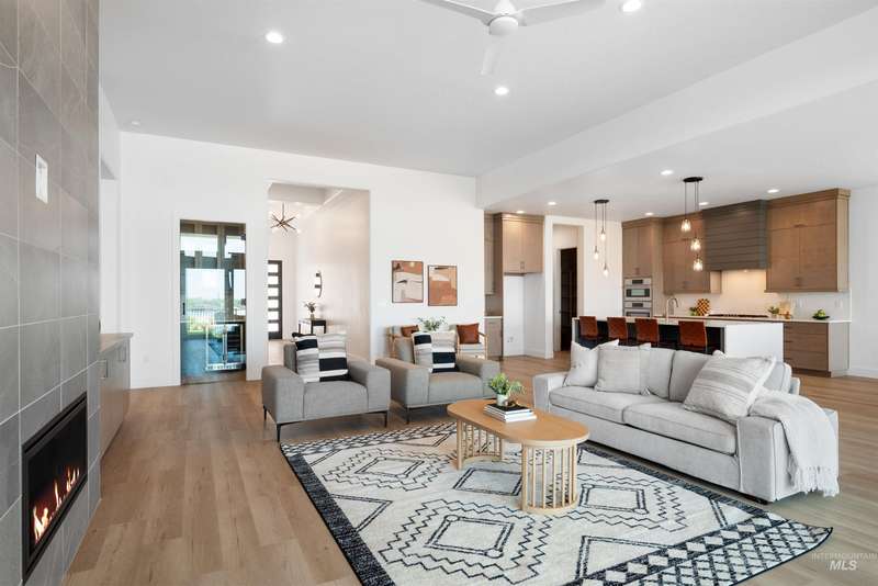Nestled in the highly sought-after community of Sky Mesa, this beautiful single-level home offers luxury and comfort with breathtaking views of the foothills. Situated on a premium corner rim lot, this home features an open-concept floor plan with high-end finishes throughout. As you enter, you're greeted by a stunning great room complete with a cozy fireplace, luxury vinyl plank flooring, and expansive multi-slide doors that invite natural light and seamless indoor-outdoor living, and a custom wine room. The chef’s kitchen boasts warm cabinetry, pantry, sleek SS appliances, built-in oven, gas cooktop, and waterfall quartz counters. Spacious mud room/laundry area with a mud bench and sink. The luxurious primary suite offers a serene retreat that includes dual vanities, quartz counters, walk-in shower, deep soaker tub, and walk-in closet. There are two additional bedrooms and a private office space, perfect for remote work or study. Garage features an epoxy floor, water softener and storage.