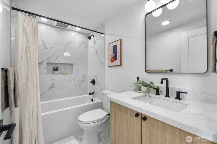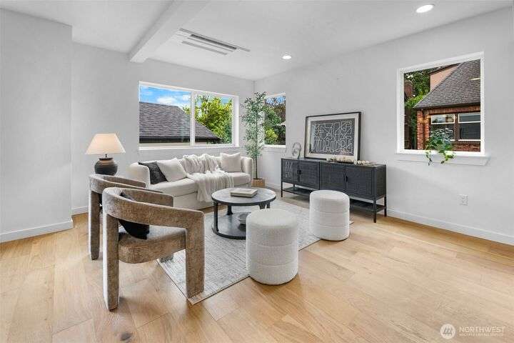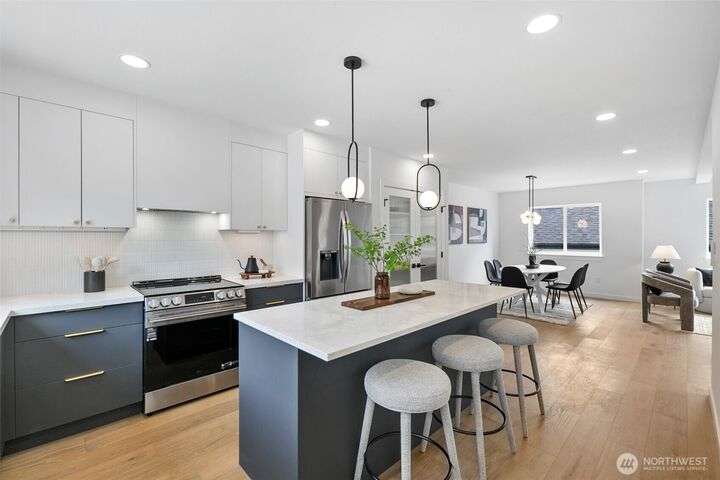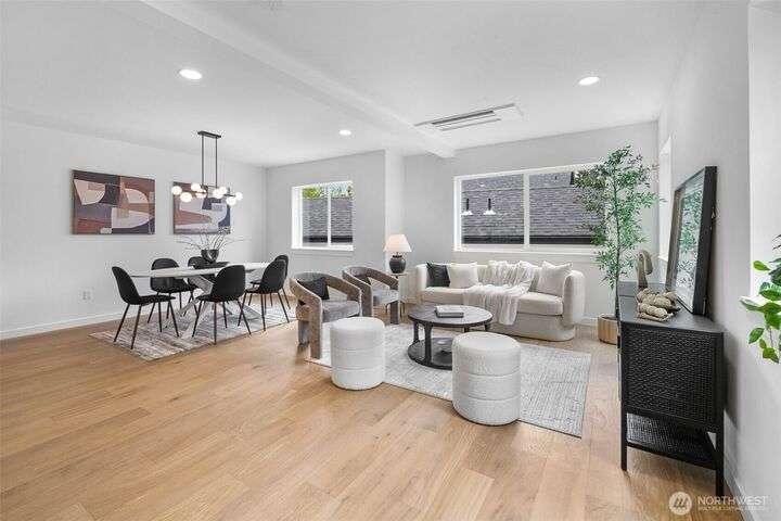 Back on market, buyers got cold feet. Don't miss out! This standout 4-bed single-family home anchors a brand-new community, offering generous proportions, refined finishes, and elevated urban living. The main living area features vaulted ceilings, wide-plank floors, and west-facing windows for natural light. Open-concept kitchen and dining streamline daily routines and effortless entertaining. Upstairs, the primary suite has a spa-like bath with heated floors and a walk-in closet with custom built-ins. Sunset views crown the rooftop deck; an attached garage makes parking seamless. Energy-efficient, built with care, this home offers thoughtful design just blocks from Jefferson Park, LINK light rail, and Beacon Hill cafés and restaurants.