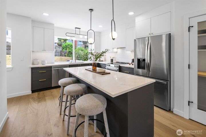Act Fast! 2.99% Intro Rate! Get a 3-2-1 Buydown on a 5.99% 7/6 ARM. This standout 4-bed single-family home anchors a brand-new community, offering generous proportions, refined finishes, and elevated urban living. The main living area features vaulted ceilings, wide-plank floors, and west-facing windows for natural light. Open-concept kitchen and dining streamline daily routines and effortless entertaining. Upstairs, the primary suite has a spa-like bath with heated floors and a walk-in closet with custom built-ins. Sunset views crown the rooftop deck; an attached garage makes parking seamless. Built with care, this home offers thoughtful design just blocks from Jefferson Park, LINK light rail, and Beacon Hill cafés and restaurants.