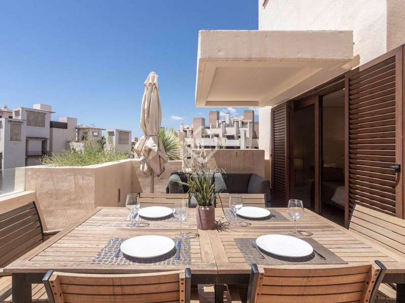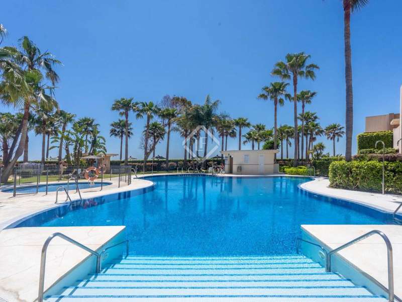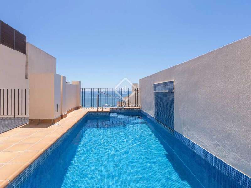 Discover luxury beachfront living in this stunning two-bedroom duplex penthouse in Bahía de la Plata, one of Estepona’s most sought-after gated communities on the New Golden Mile. This exquisite south-facing penthouse offers breathtaking panoramic sea views, spacious interiors, and high-end finishes, making it the perfect investment or holiday home. Located on the third and fourth floors, the property features a bright and airy open-plan living and dining area with direct access to a large private terrace, ideal for outdoor dining while enjoying spectacular Mediterranean views. The modern, fully fitted kitchen includes high-end appliances and a separate laundry area for convenience. The main floor also hosts the main bedroom with an en-suite bathroom and a guest toilet. Upstairs, we find a private suite with its own bathroom, leading to an expansive rooftop terrace featuring a private pool—a rare luxury in this exclusive community. The outdoor space is perfect for sunbathing, entertaining, or simply unwinding with uninterrupted sea views. This penthouse comes with a private garage space and a storage room, adding to its convenience. The Bahía de la Plata complex offers direct beach access, 24-hour security, landscaped tropical gardens, outdoor pools, an indoor heated pool, a gym, and a spa, ensuring a resort-like experience all year round. Located just minutes from Estepona’s vibrant town centre, we can enjoy easy access to top restaurants, luxury boutiques, golf courses, and the marina. With Marbella and Puerto Banús just a short drive away, this penthouse is a prime choice for those seeking an exclusive Costa del Sol lifestyle. Please contact us for further information.
