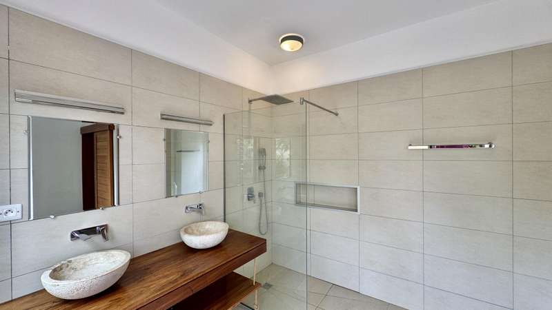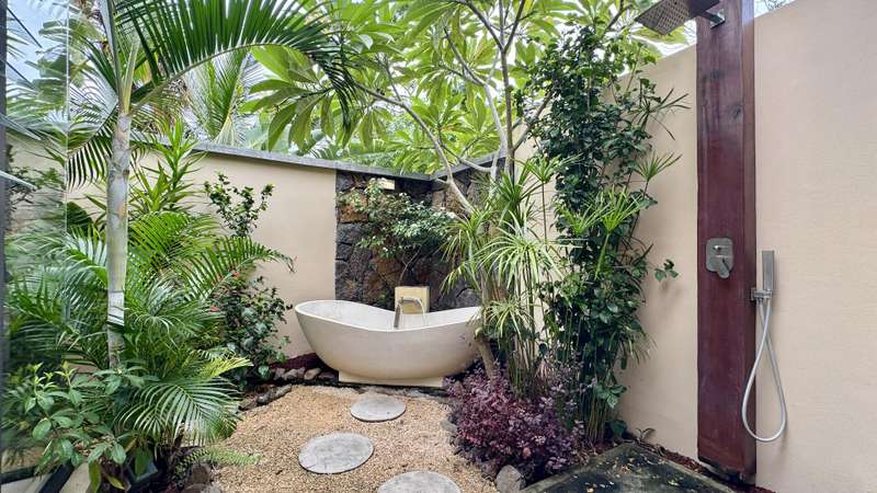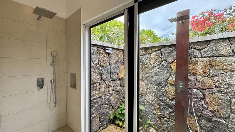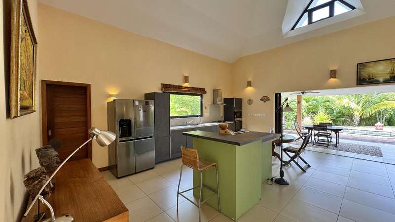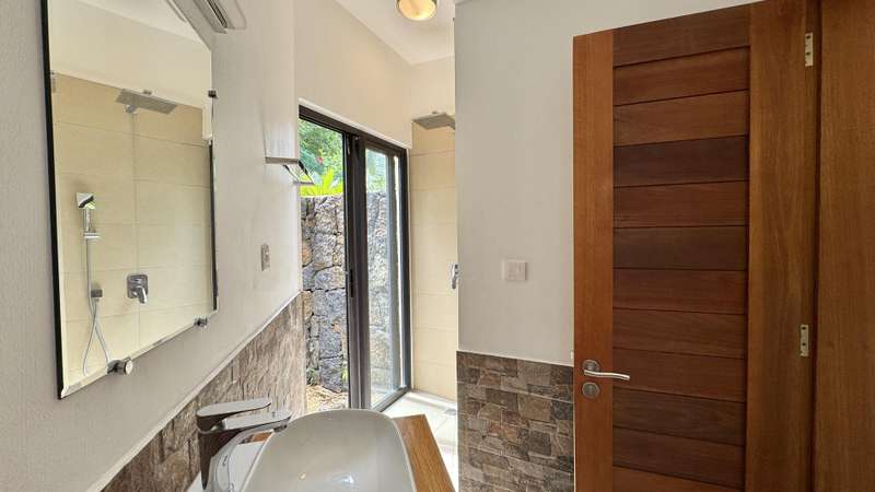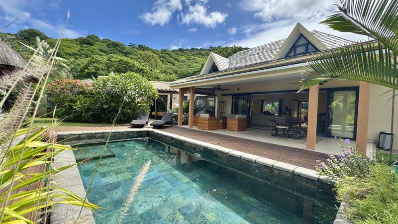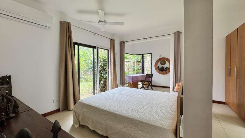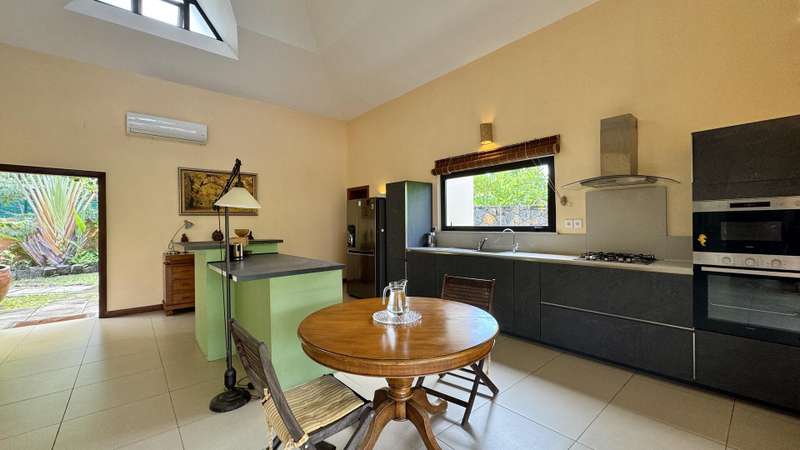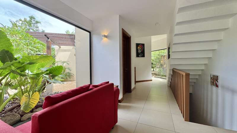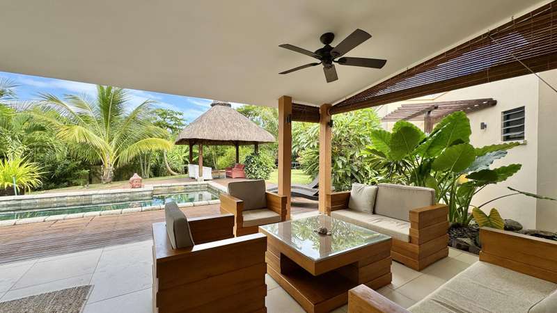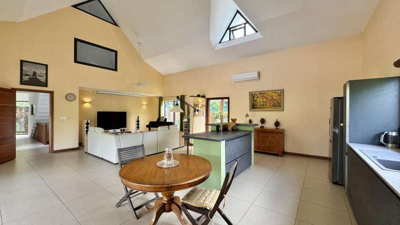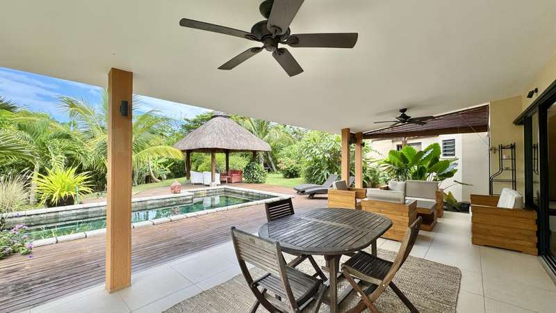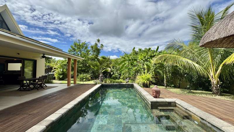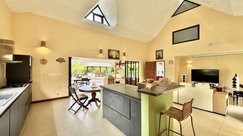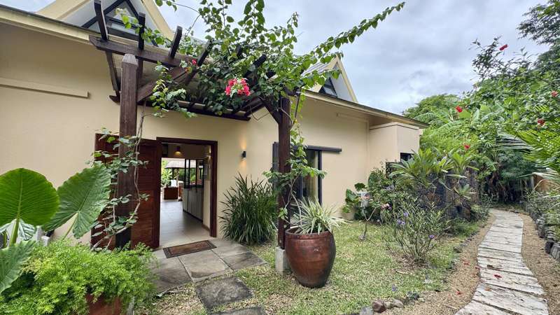 This Balinese inspired villa, nestled within a secure gated complex in Black River on the west coast of Mauritius, offers a lifestyle defined by natural tranquility and proximity to the region's sought after amenities. Residents enjoy exclusive access to a communal swimming pool and clubhouse, enhancing the sense of community. The property itself, set on a sprawling 1477 m² plot, features a lush tropical garden, an inviting slate pool, and a charming thatched kiosk. Upon entering, you'll be greeted by a spacious, high ceilinged living area, encompassing an open-plan kitchen and a TV lounge, which seamlessly extends onto a covered veranda overlooking the pool and garden. A hallway leads to the four bedrooms, a guest WC, and access to a vast basement. Three bedrooms offer direct access to the verdant garden and boast en-suite bathrooms, with the main bedroom featuring a luxurious bathroom including a double vanity and access to an inviting outdoor shower and bathtub. The fourth bedroom, located on the mezzanine level, is air-conditioned and can also serve as an office or playroom. A 5th independent en-suite bedroom provides added flexibility and privacy. Sold semi-furnished, this villa also includes a BBQ area, a carport for two cars, a back kitchen and laundry room, solar power installation, and water tanks, ensuring both comfort and convenience. This is an ideal home for those seeking a blend of natural beauty, secure living, and easy access to Black River's renowned facilities and locations : Black River Gorges, La Balise Marina, Vanilla Village, Ruisseau Creole shopping mall, Le Morne, Fit Life Gym… Accessible to foreign investors, the new owners will be eligible for Mauritian residency. Contact DIANE WATKINS – Property Consult for a private viewing today!