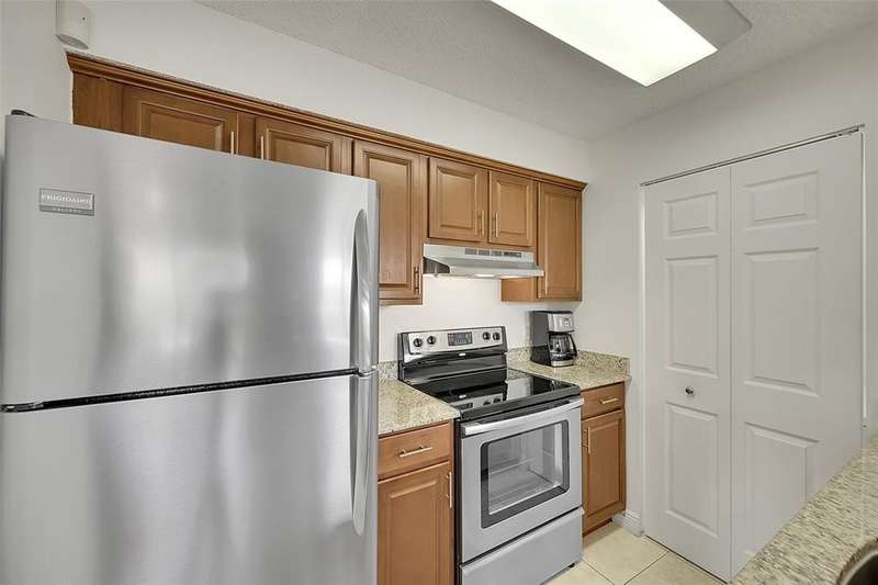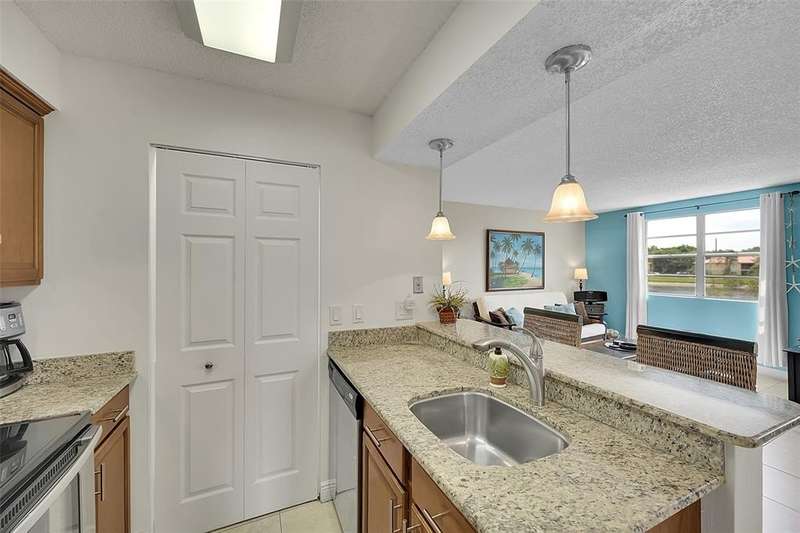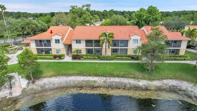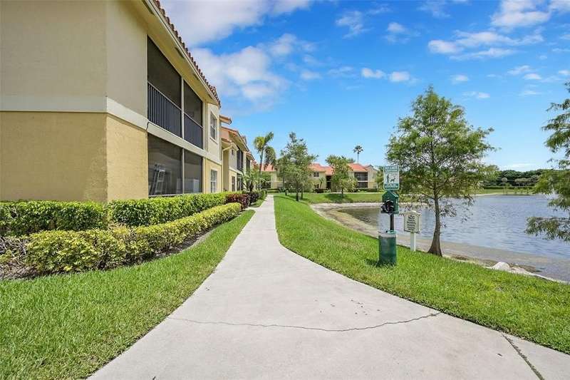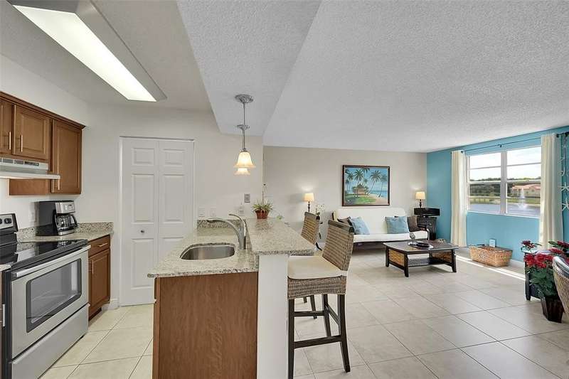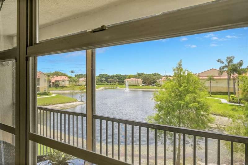 WOW! Completely Remodeled Waterfront Corner Unit with Screened Balcony with Extra Storage Room! IN UNIT Laundry Room with Full-Sized Washer & Dryer. Beautifully Updated, Open Kitchen with Snackbar, Features Granite Countertops, Custom Cabinets, Stainless Steel Appliances, Self Cleaning Oven. Furniture Negotiable & For Sale. Corner Bedroom with Amazing Waterfront Views from BOTH Windows & a Walk-In Closet. Bathroom with Granite Countertops, Stylish Sink, Step-In Shower with Glass Enclosure & Ceramic Tile Walls. AC 2022, Bluetooth Remote Controlled Thermostat, Water Heater 2010 & Security System. Gated Entry, Resort Style Pool, Pet Friendly with Pet Park, GYM OPEN 24 HOURS, Clubhouse, On-Site Car Care Center, Tennis, Racquetball & a 1 Mile Long Lakeside Sidewalk Path! WELCOME HOME!
